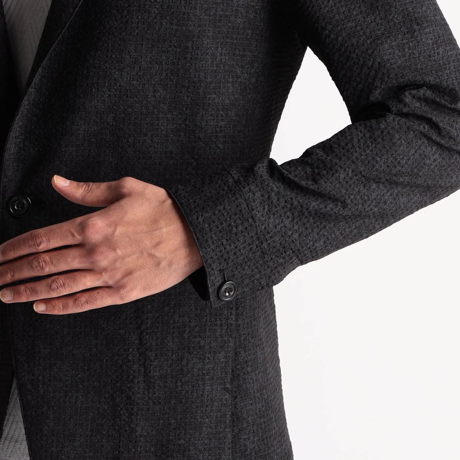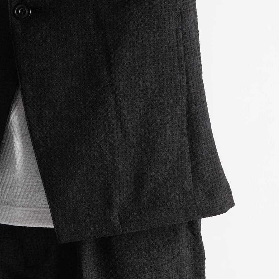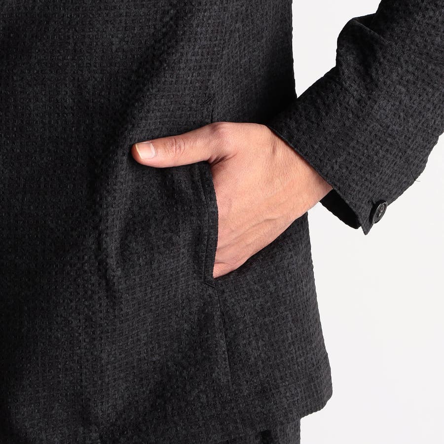 ナローラペルの1Bジャケット。ラペルは少し細めでフロントラインを直線的にシャープに仕上げ、脇ポケットをスラッシュポケットにする事でシャツブルゾンの様な印象に仕上げています。一重仕様で軽い仕上がりなので、シャツ感覚で羽織ってください。前身裏のみ付けて内ポケットを作っています。