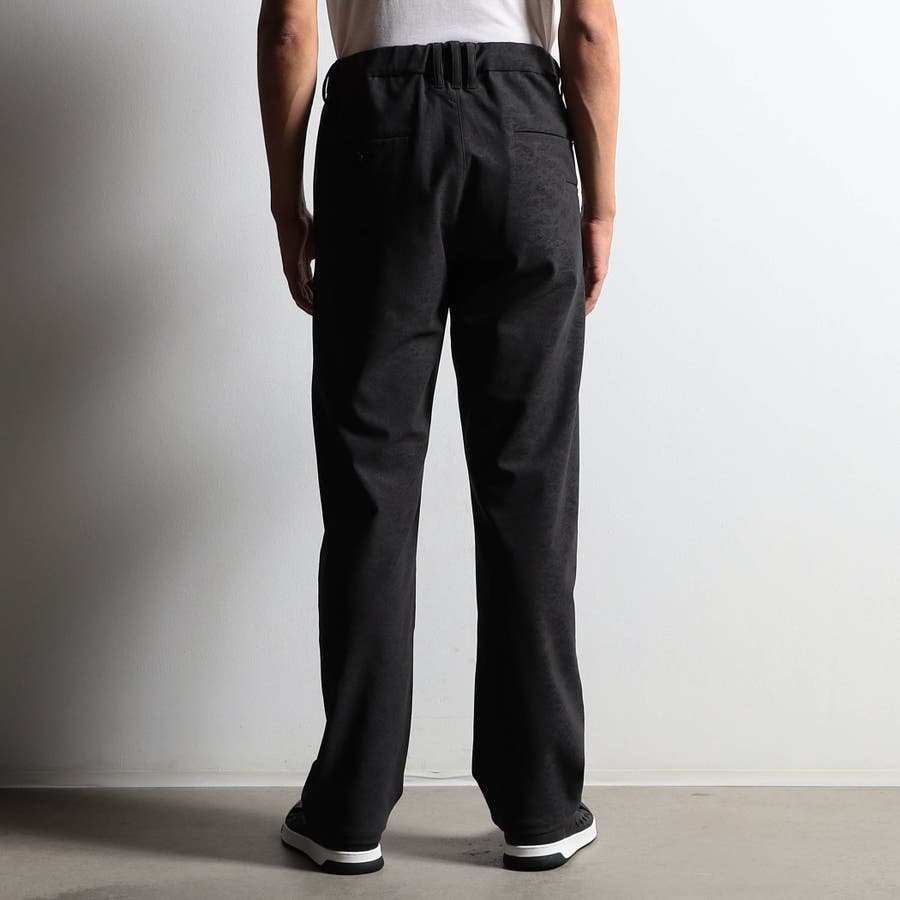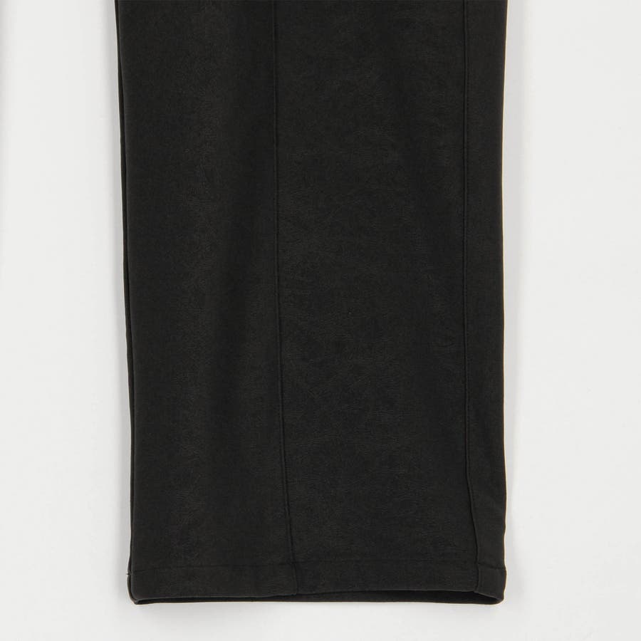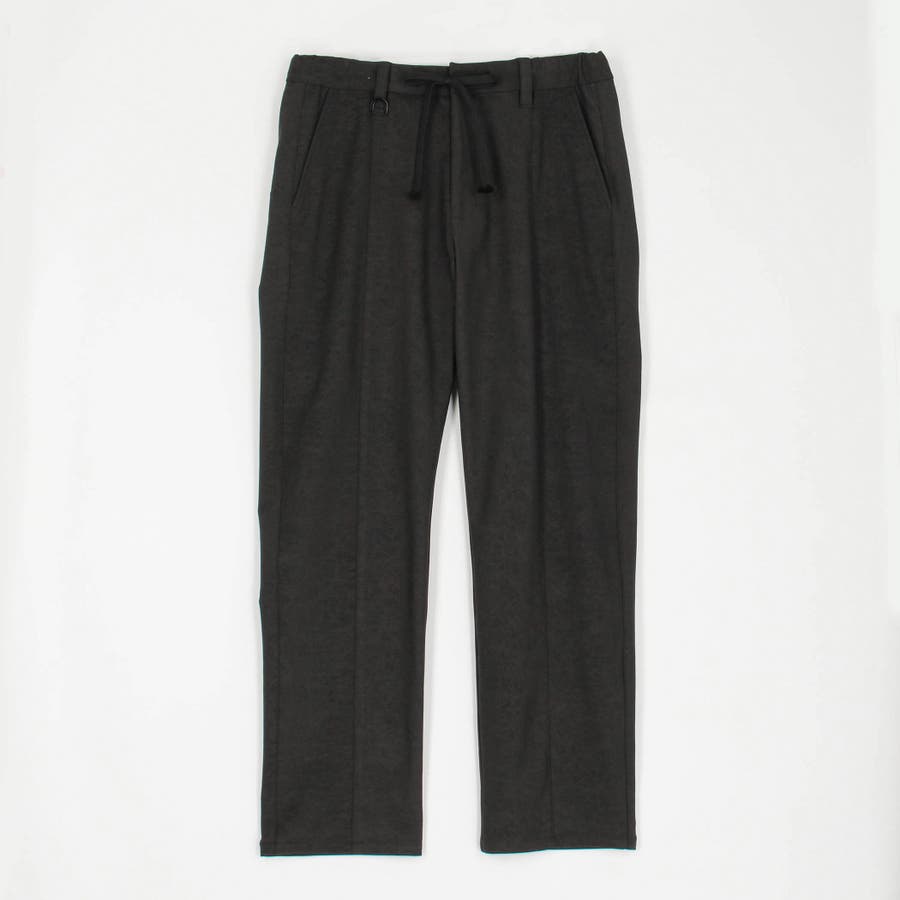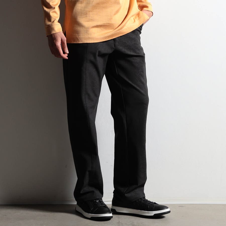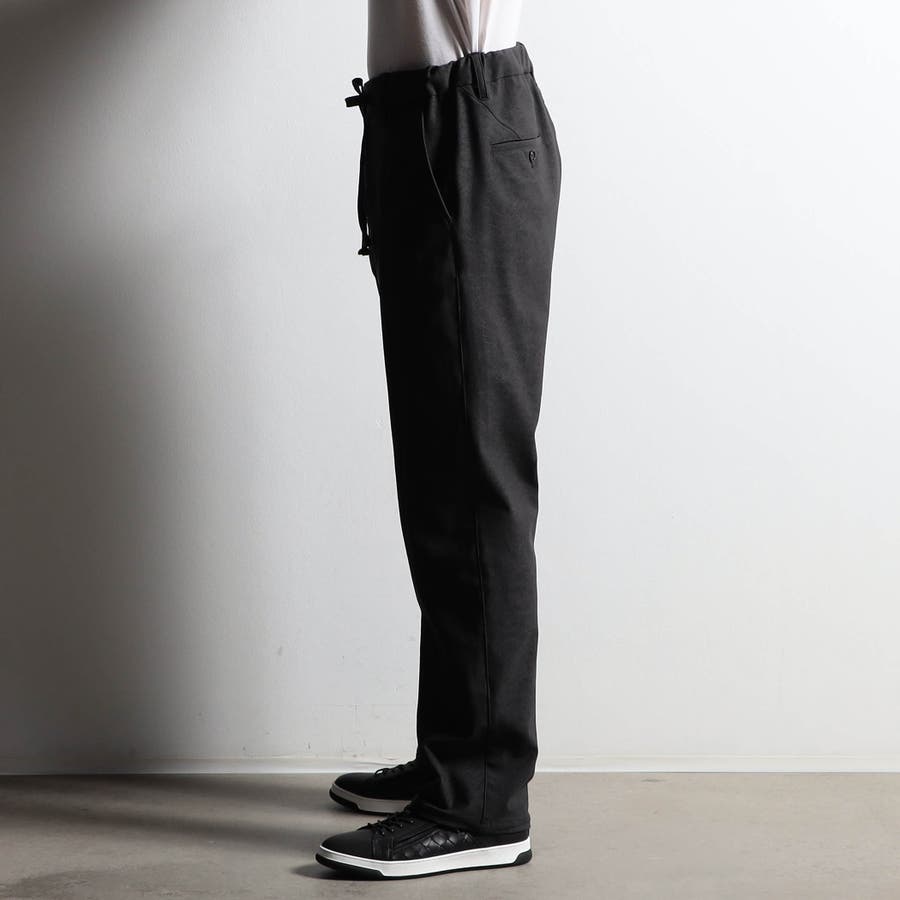 ウエストと腰周りは少しタイトめ調整し、裾口にかけて細くしたストレートシルエットの綺麗なラインです。股下は少し短めの9分丈設定にしています。