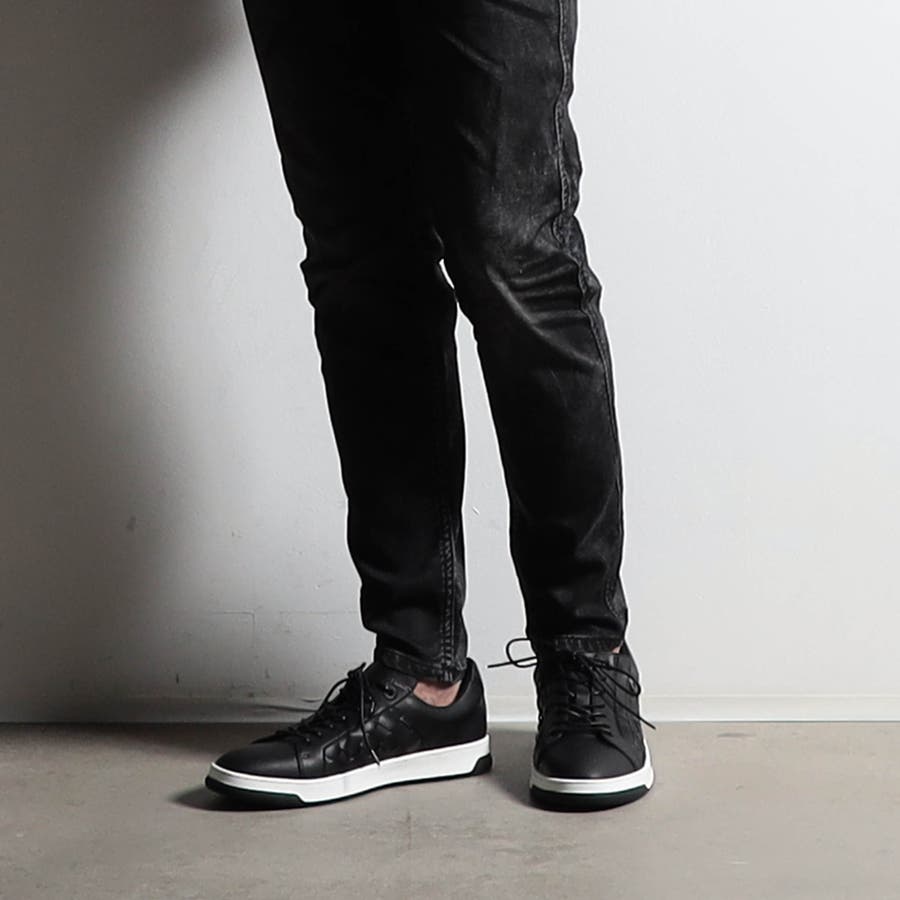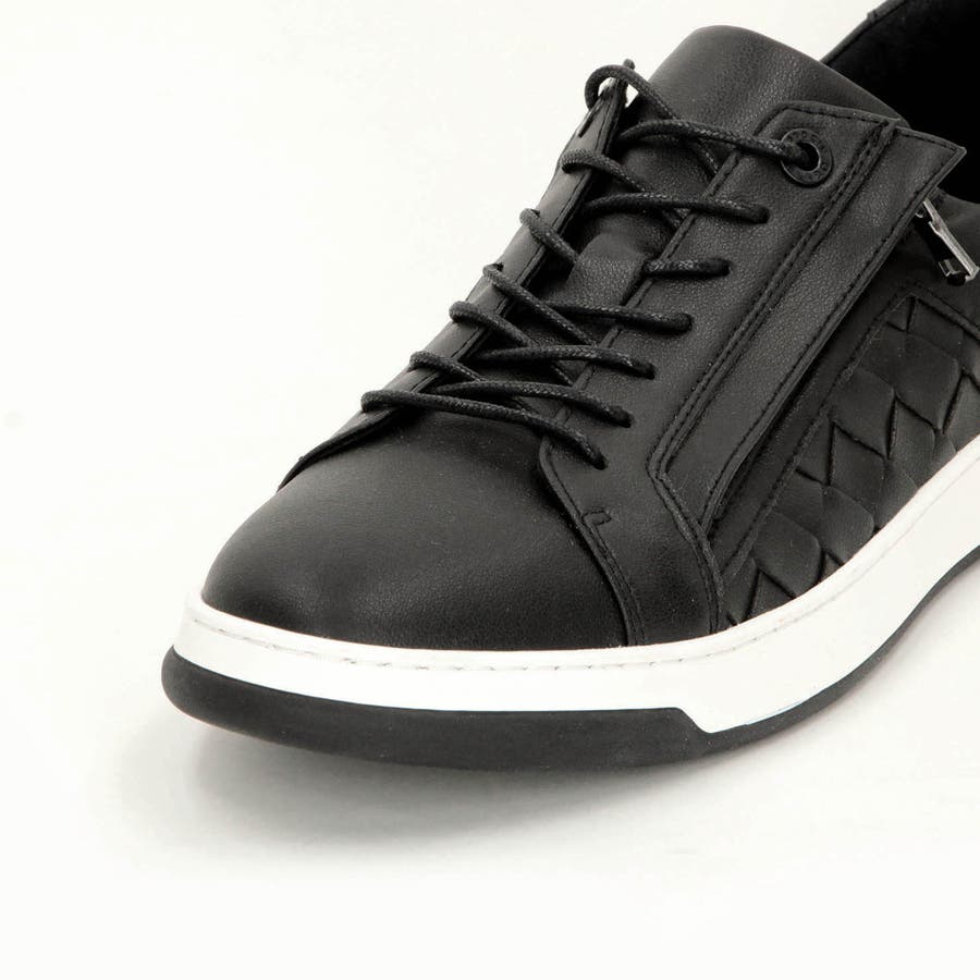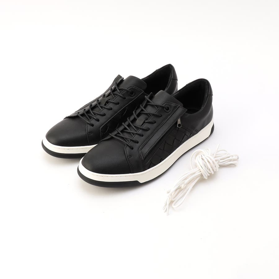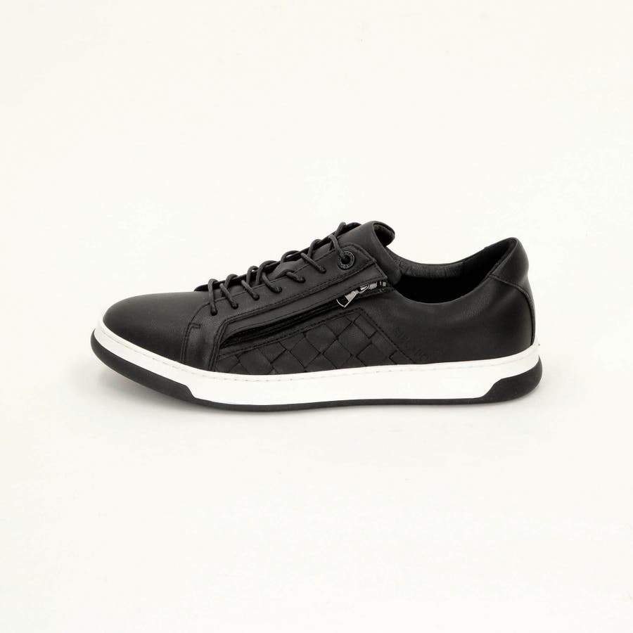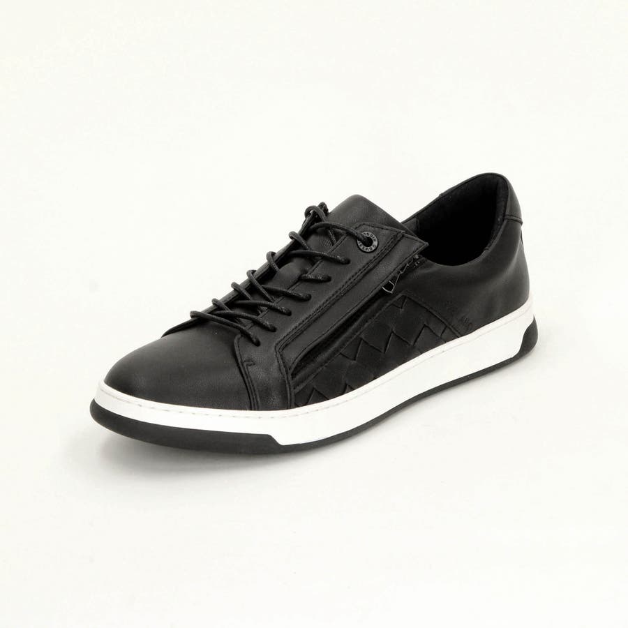 モードなイメージに仕上げたコートスニーカー。少し細長く、トゥスプリングの利いた木型(ラスト)に、コートタイプのスッキリとした2トーンのモールドソールを採用、トレンド感のある大人モードなシューズです。サイドパネルに共革の編み込み(イントレチャート)デザインを取り入れ高級感をプラス。サイドファスナー仕様で履きやすく、シュータンと履き口にはクッション材を入れて、インソールにカップソールを採用する事で包み込む様なフィット感を高めています。