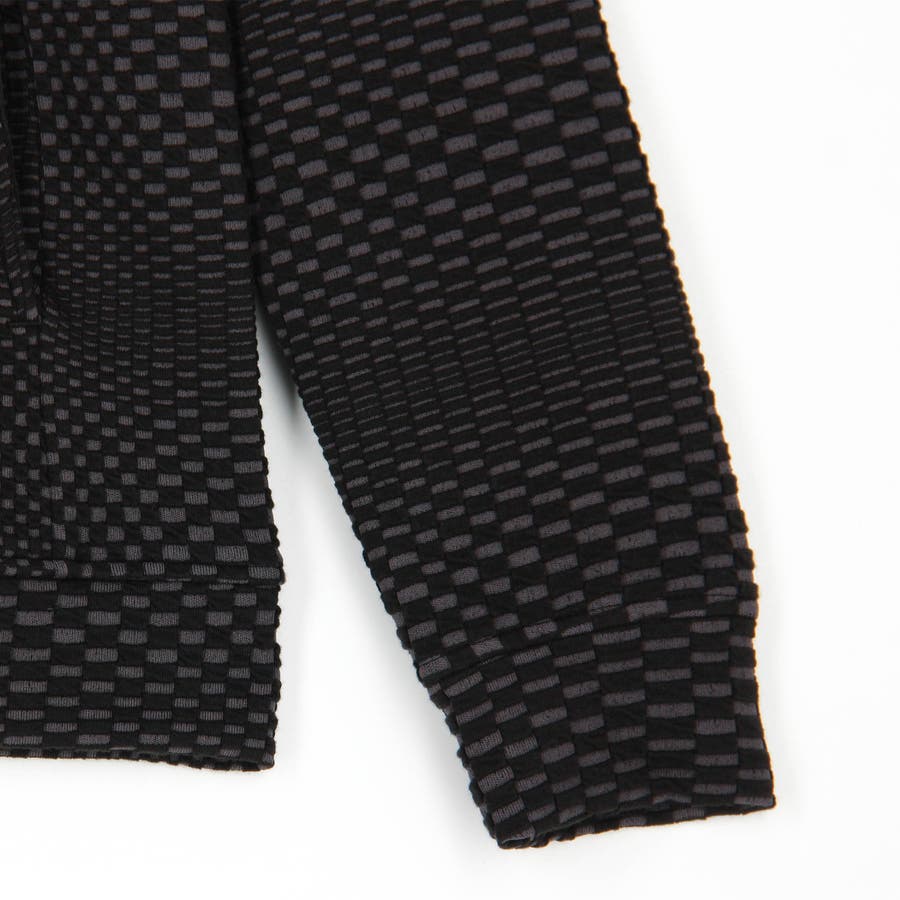 市松柄をアレンジしたジオメトリック調ブリスタ-ジャカ-ド。ブリスタ-<膨れ>編みという特殊な技法で空気が入っているかの様なふっくらとした凹凸感を表現しています。