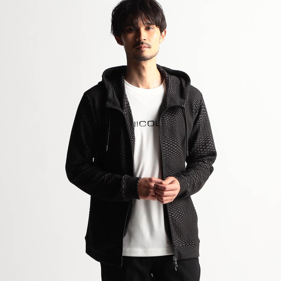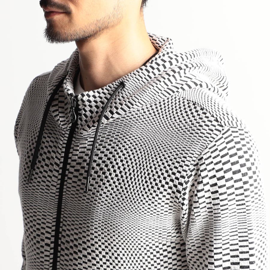 ジオメトリックジャガードフードパーカー