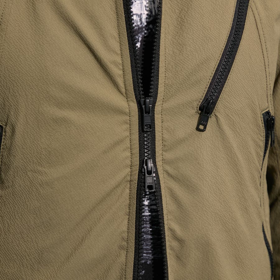 フロントの切り替えとそこに配した26cmのファスナーが印象的なデザインです。