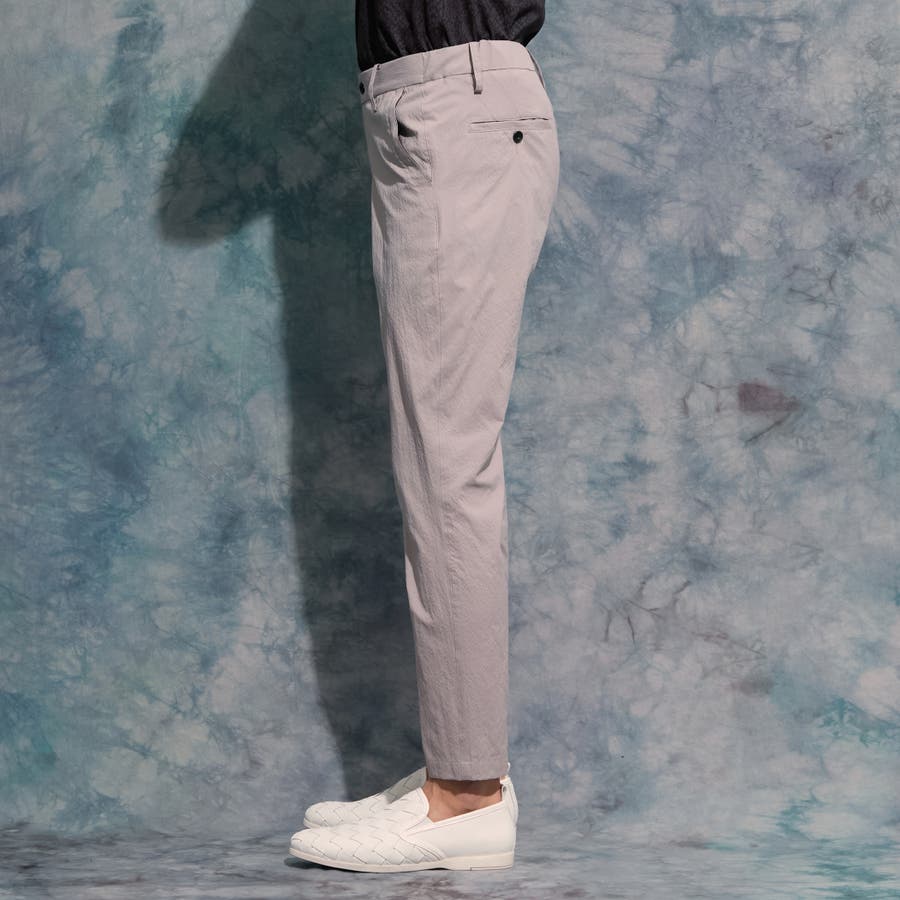 あえてセンタープレスを入れないことで、綺麗めになりすぎず、合わせるアイテムを選ばない仕上げにしています。