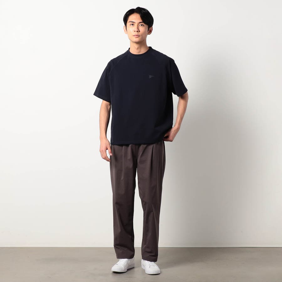 程良くゆとりのあるサイズ感で、ラグランスリーブにしているので肩傾斜が滑らかに見えるのもポインとです。裾を切り替えるでインナーで着てもだらしなく見えないようにしています。