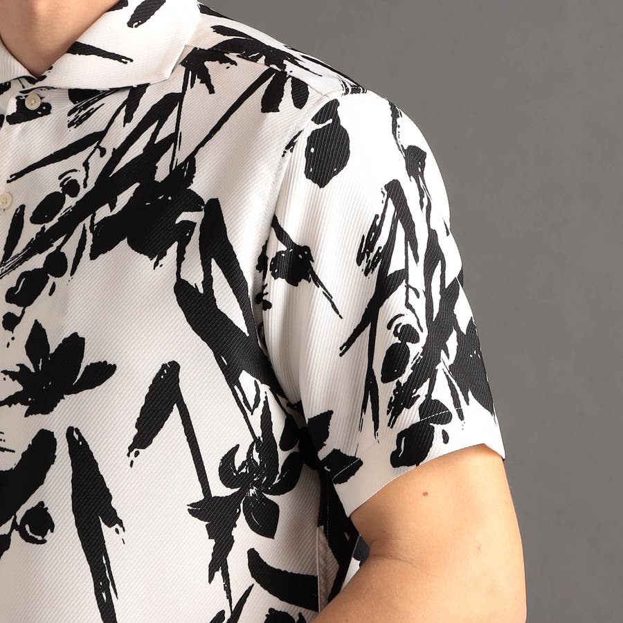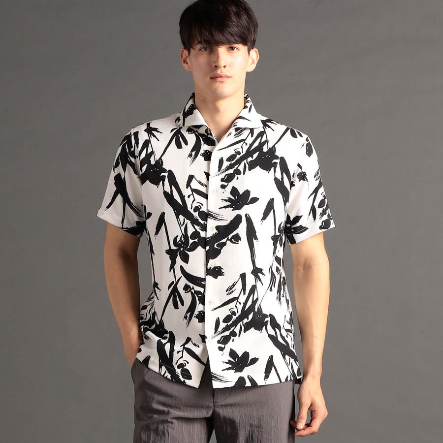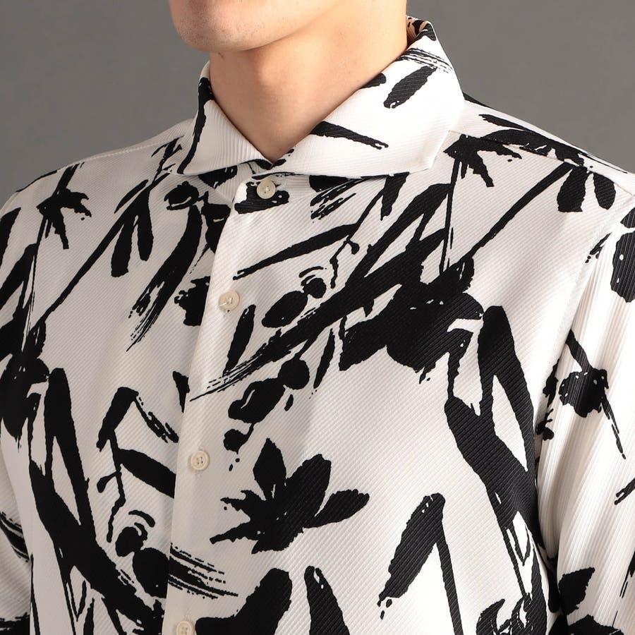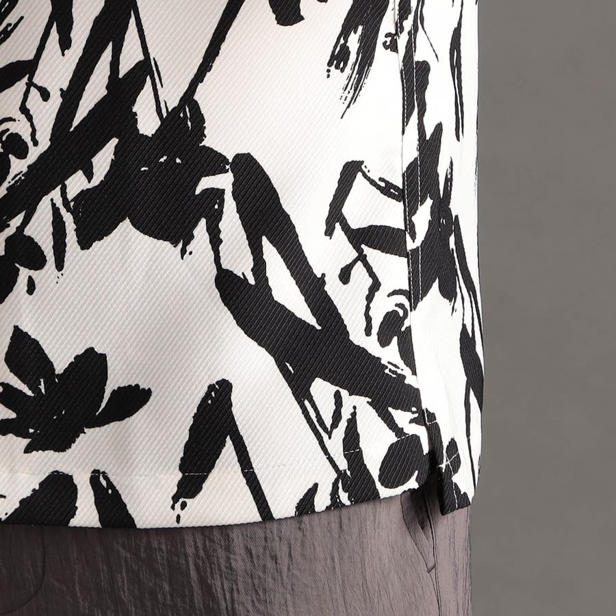 適度な張り感を持たせたツイル素材を採用したモードなボタニカルプリント地。ドライなタッチと上品なツイル組織が特徴。