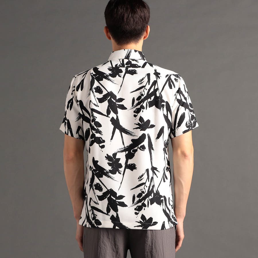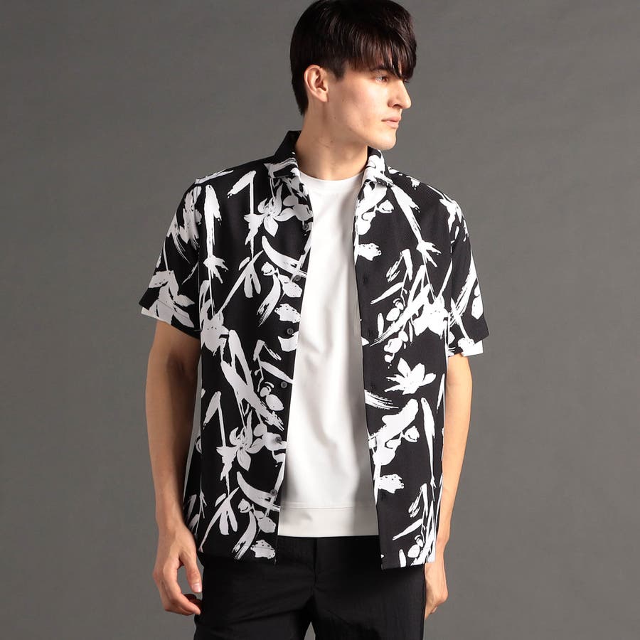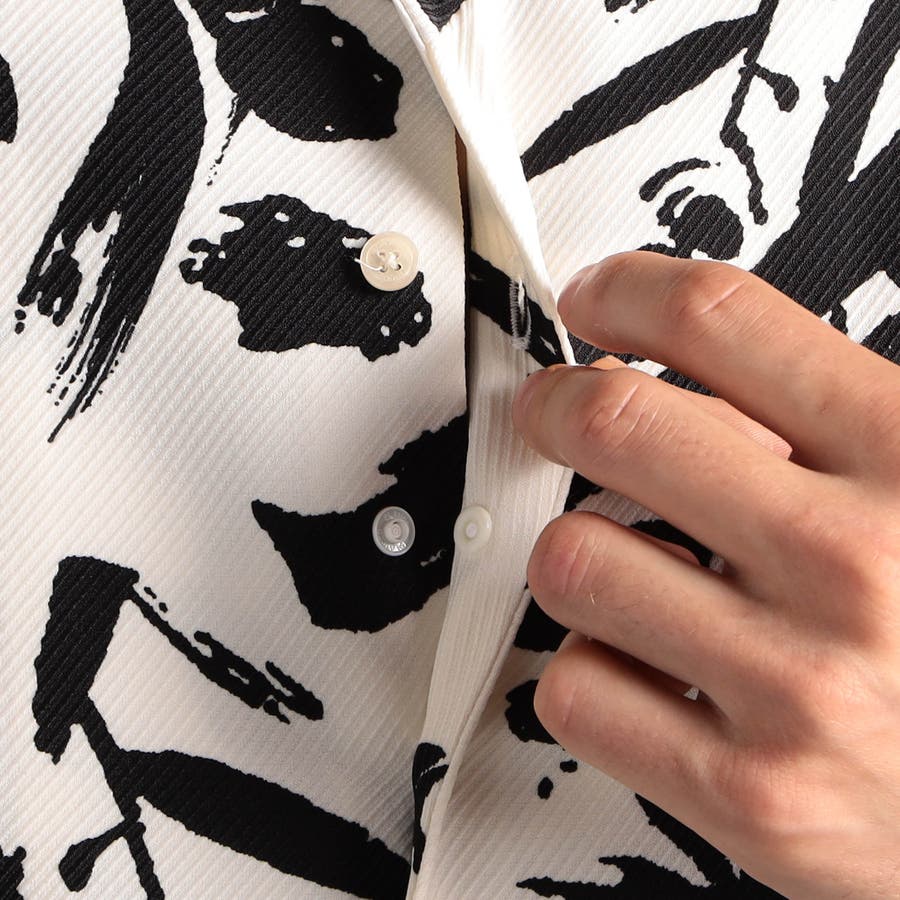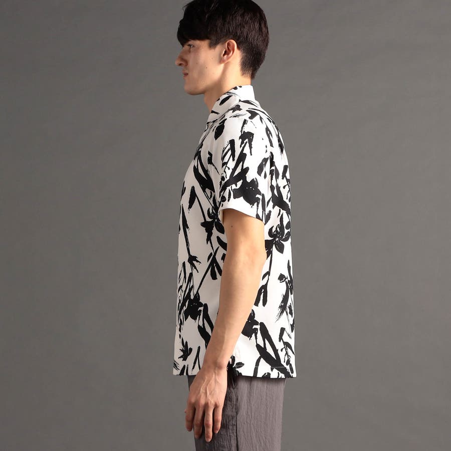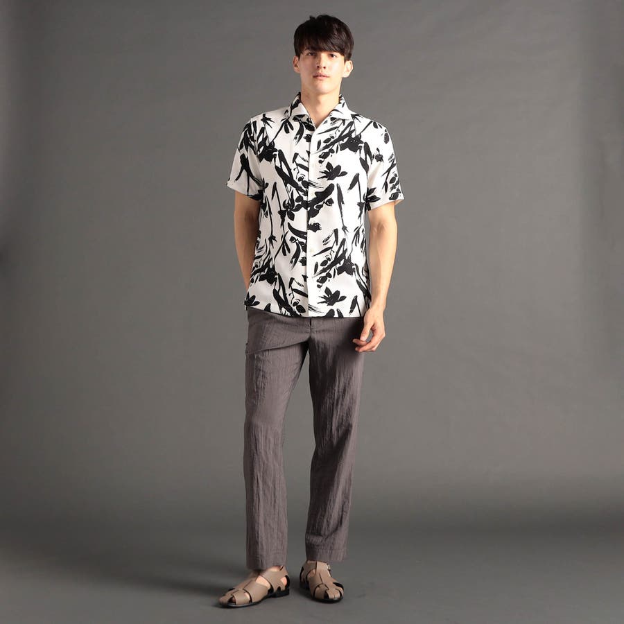 適度な張り感を持たせたツイル素材を採用したモードなボタニカルプリント地。ドライなタッチと上品なツイル組織が特徴。