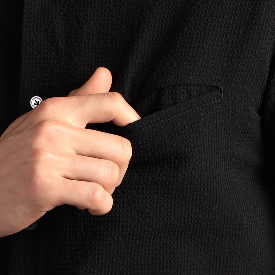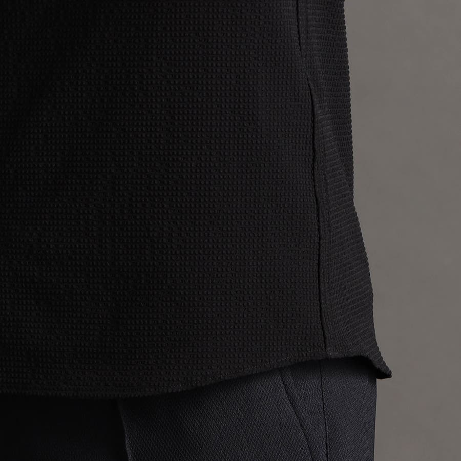 ポリエステルを使用したブロックサッカー生地を別注。格子状に組織変化させた特殊な素材でドライなタッチ感が特徴。