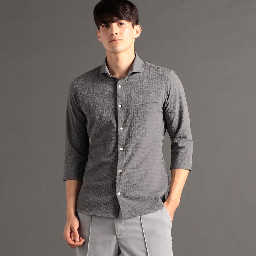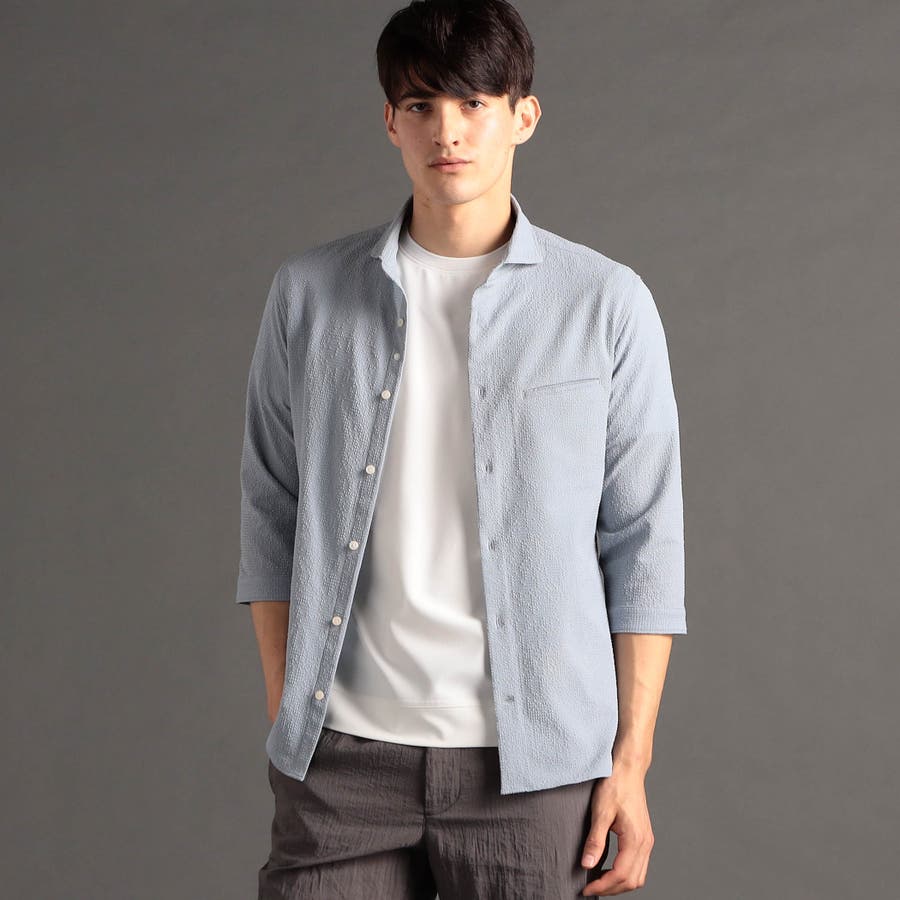 ムッシュニコル カッタウェイカラーを採用した7分袖シャツ。玉縁ポケットをあしらいアウター感覚でも羽織れるデザイン。フェードカラーで大人感を演出。