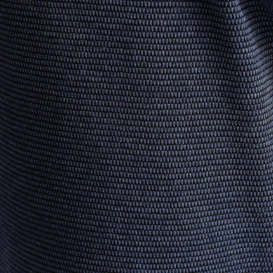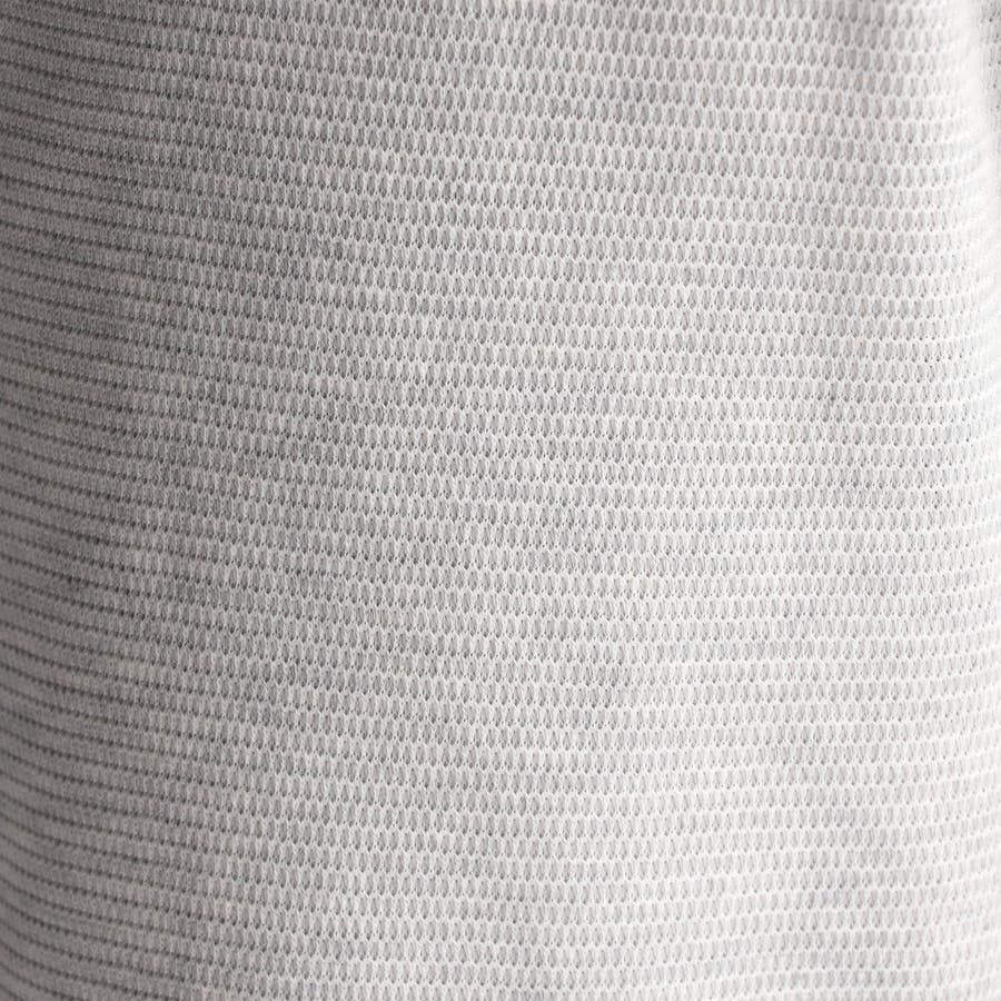 トップ調の綿糸とポリエステルを交織する事で杢調の色目と強度を出し、網目状に見える地柄ジャカード織りの国産ジャージ素材です。バーズアイ組織で鹿の子素材の様なシャリ感と透け感のある素材感が清涼感を高めます。カットソー素材の為、タテもヨコも伸びますので、とても着やすいです。