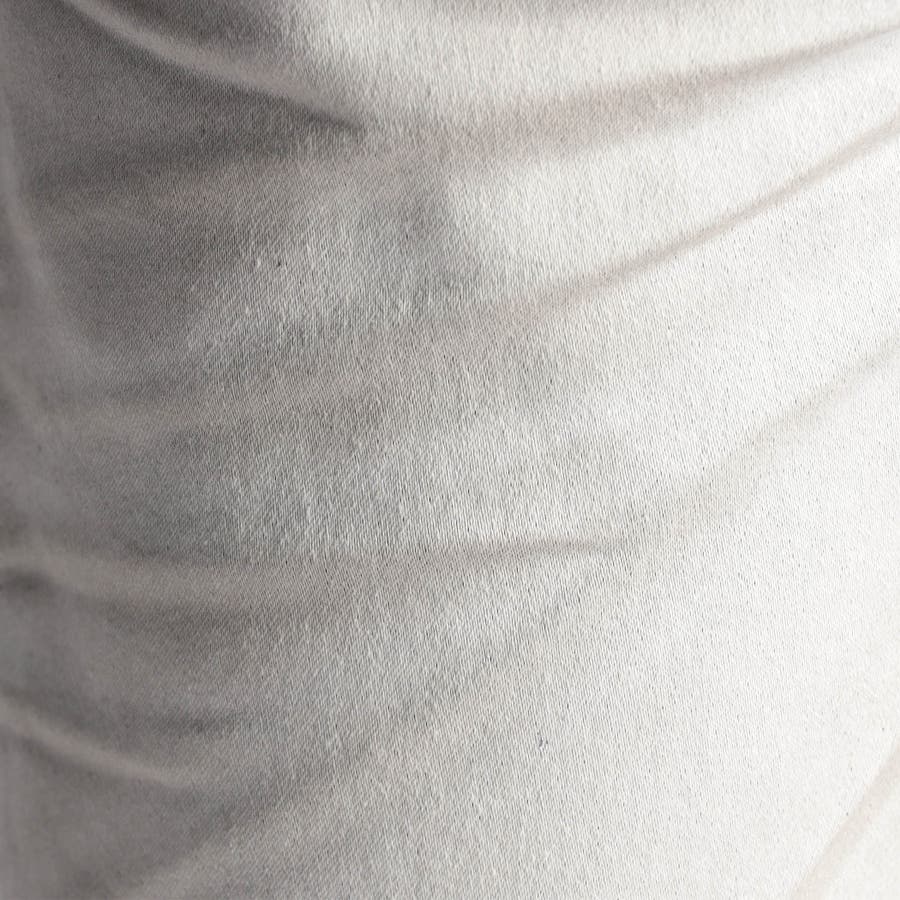 09ホワイトはタテ糸に綿糸、ヨコ糸に黒色のポリエステルとポリウレタンの混紡糸を使用したサテン(朱子織)素材。8オンス程の軽さとサテン組織の為、表面は綿が多く出ているのでナチュラルな風合い、裏側はポリエステルのサラッとしたタッチ感が特徴です。ヨコ糸の黒糸が影響する事で白の色合いに深みがあり、薄いライトグレーに見えます。製品加工にて3級程度の撥水・防汚効果をプラスしています。64サックス、67ネイビーは、レーヨン混の柔らかくてストレッチの効いた薄手9オンスのインディゴ染めデニム素材。ひんやりとした接触冷感効果があります。