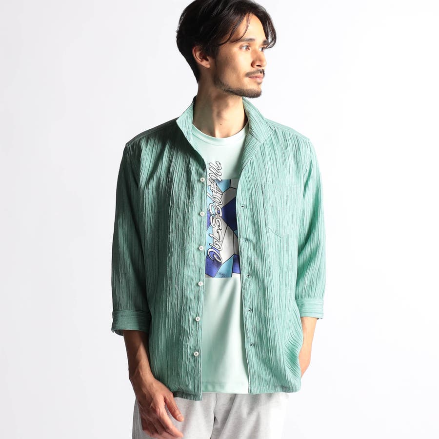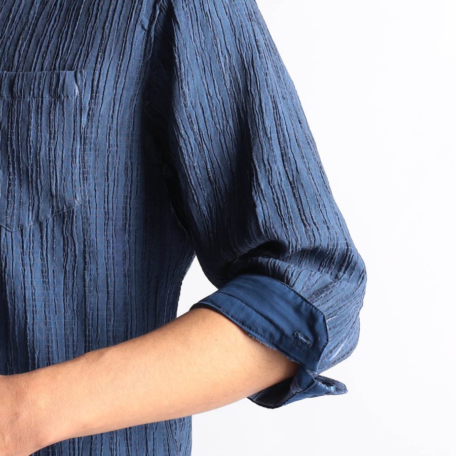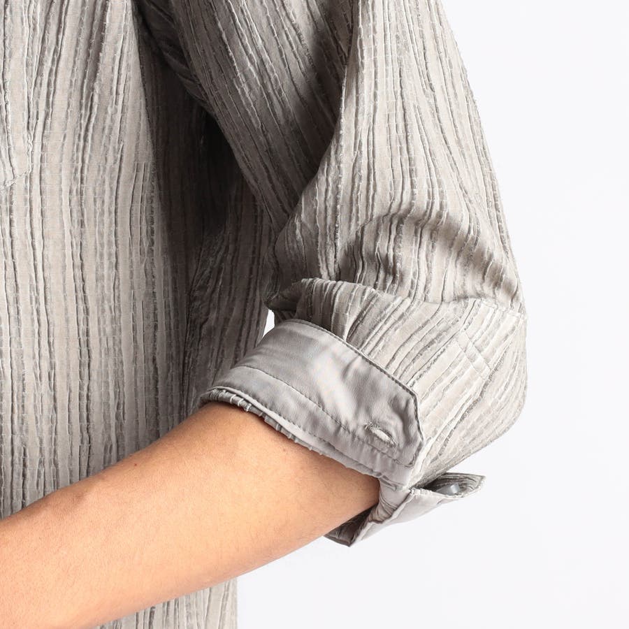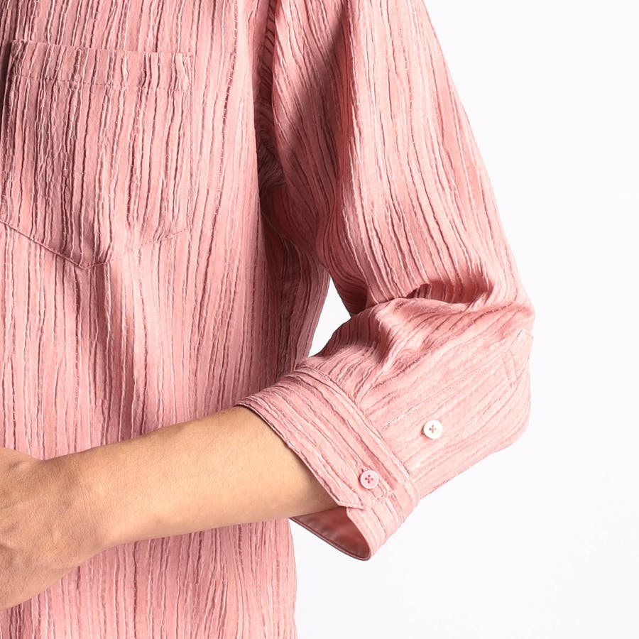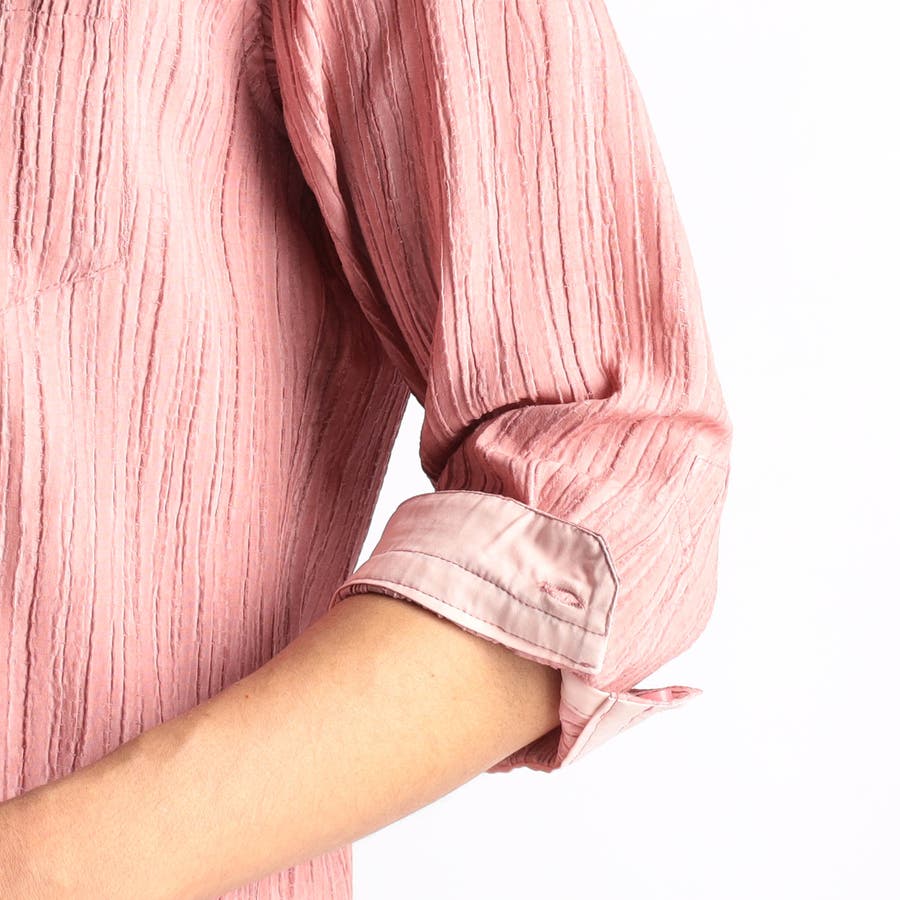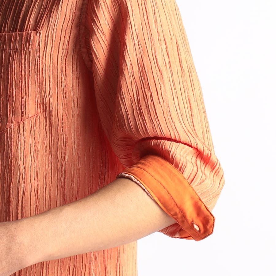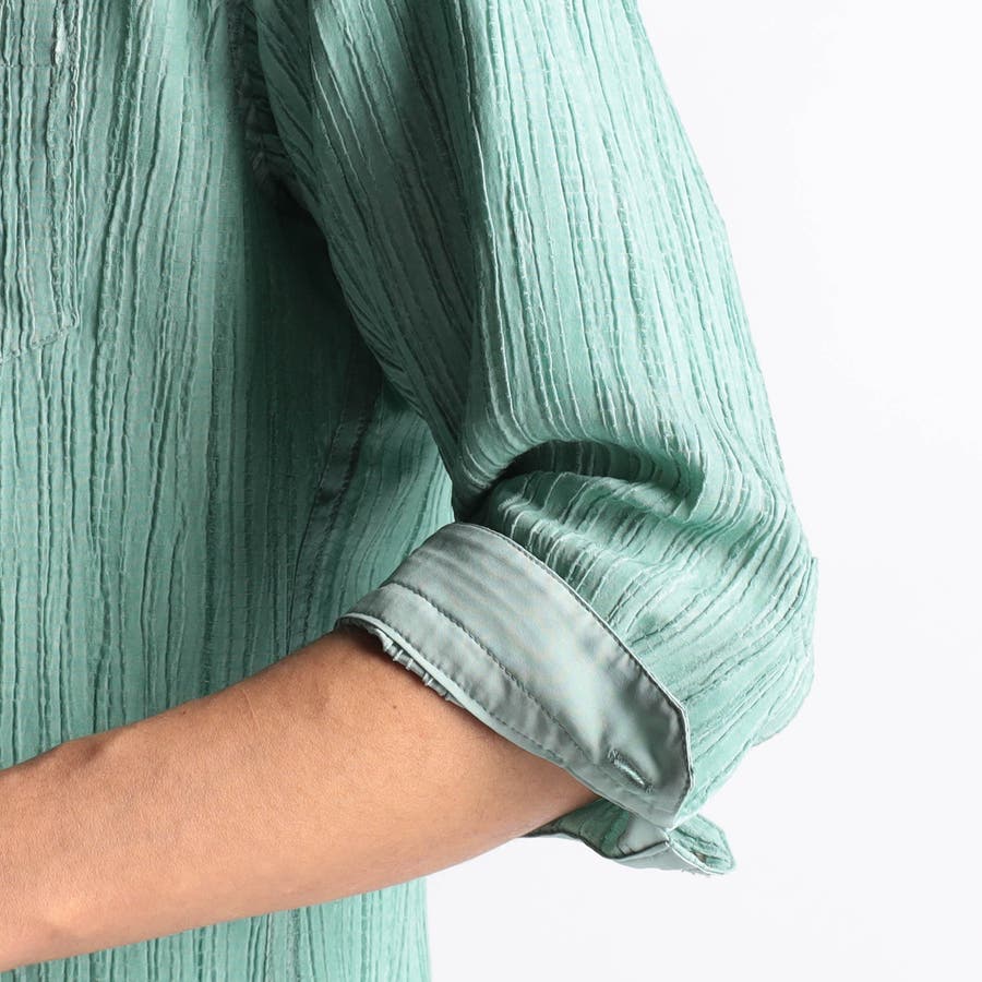 カラープリーツ7分袖スタンドカラーシャツ