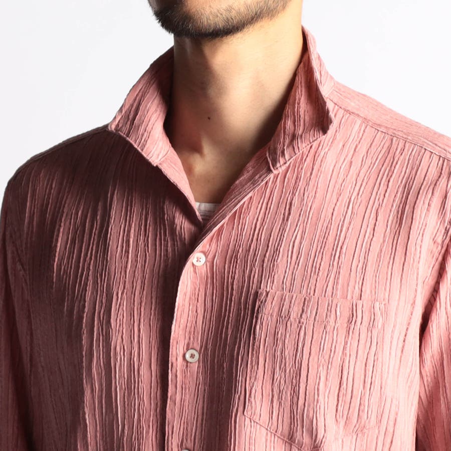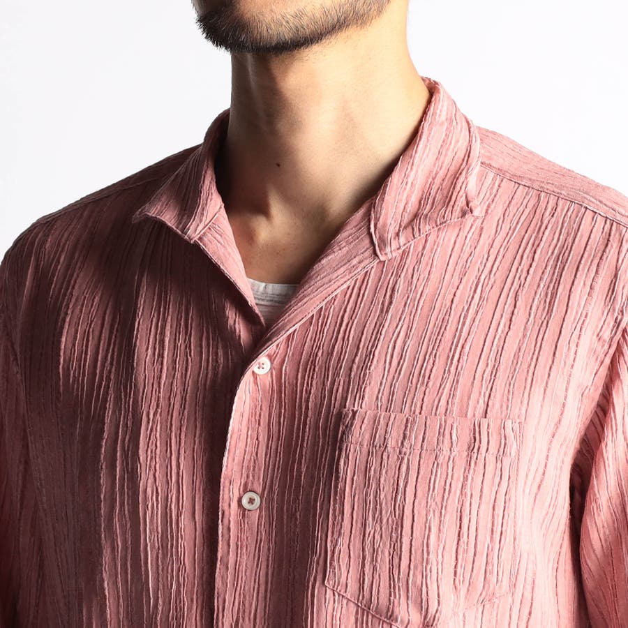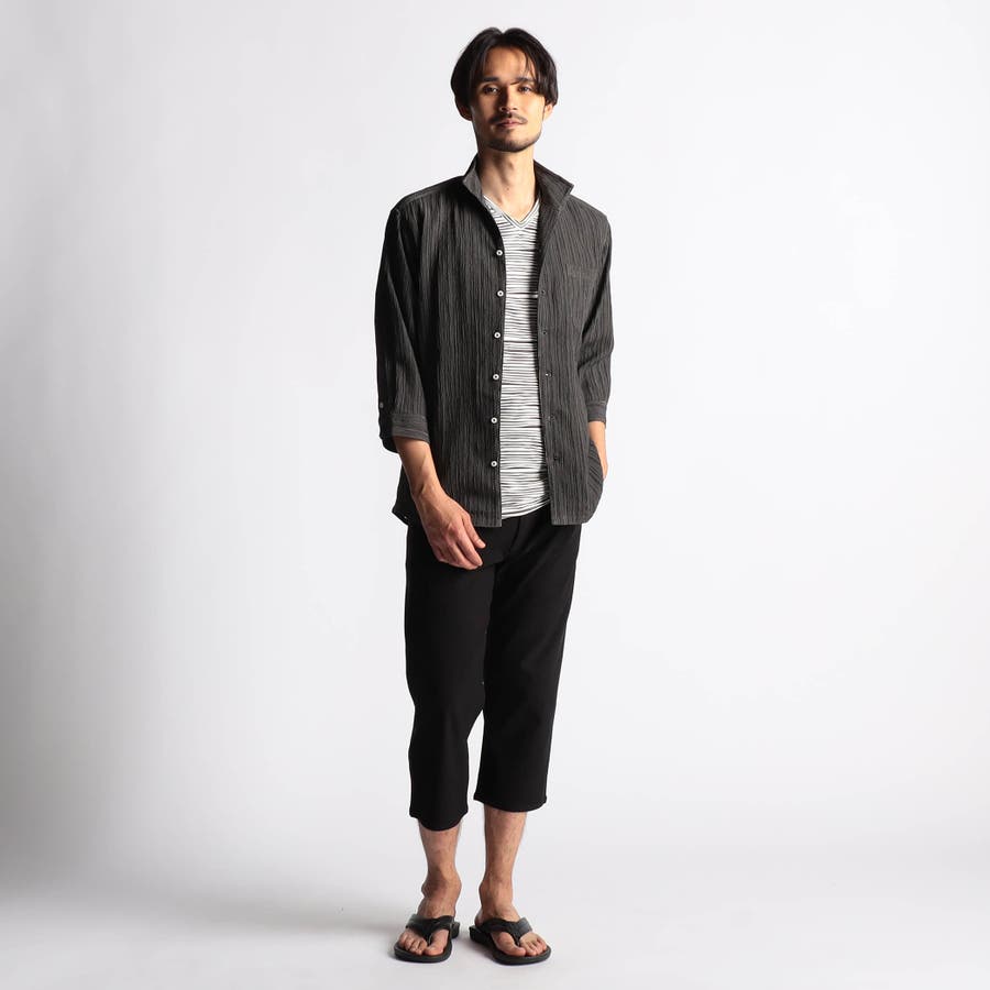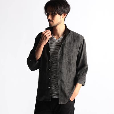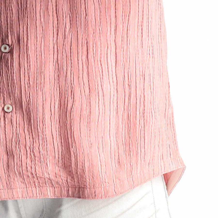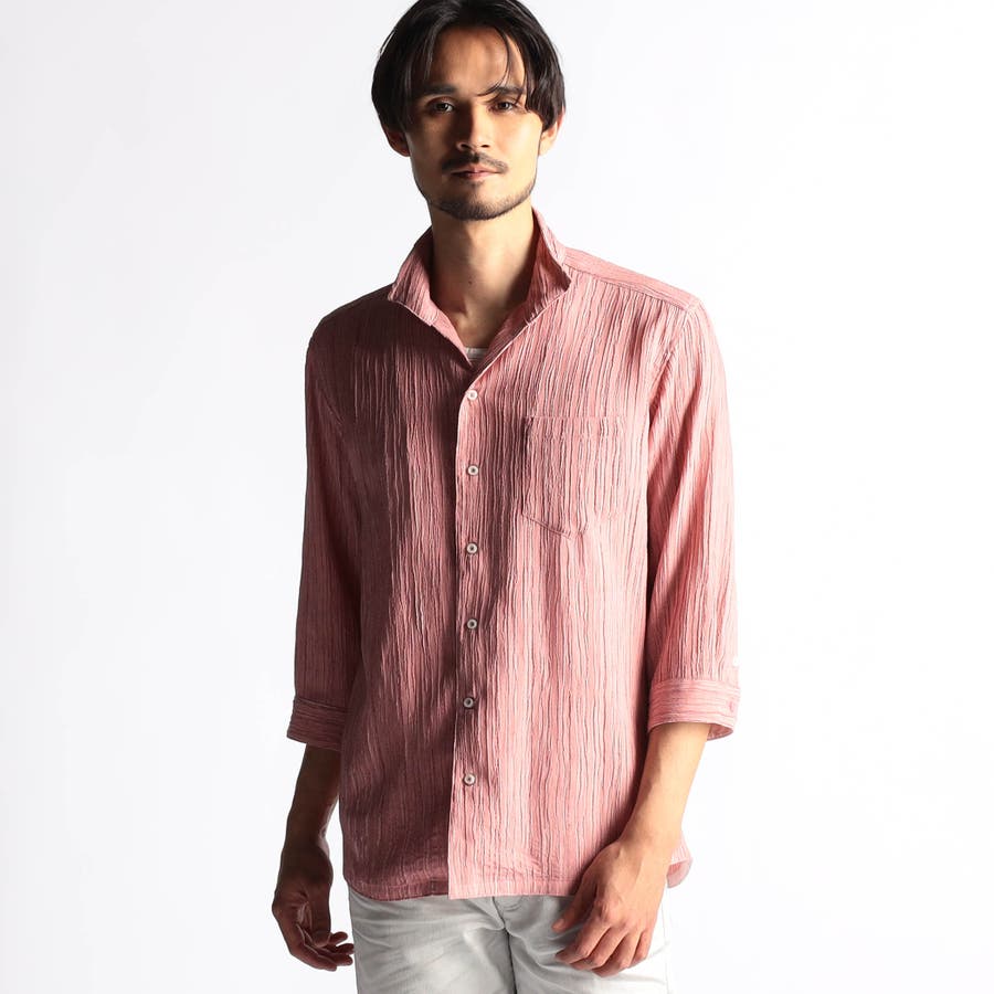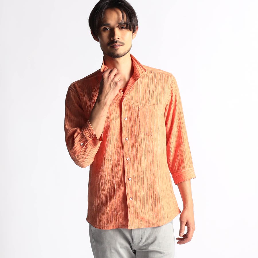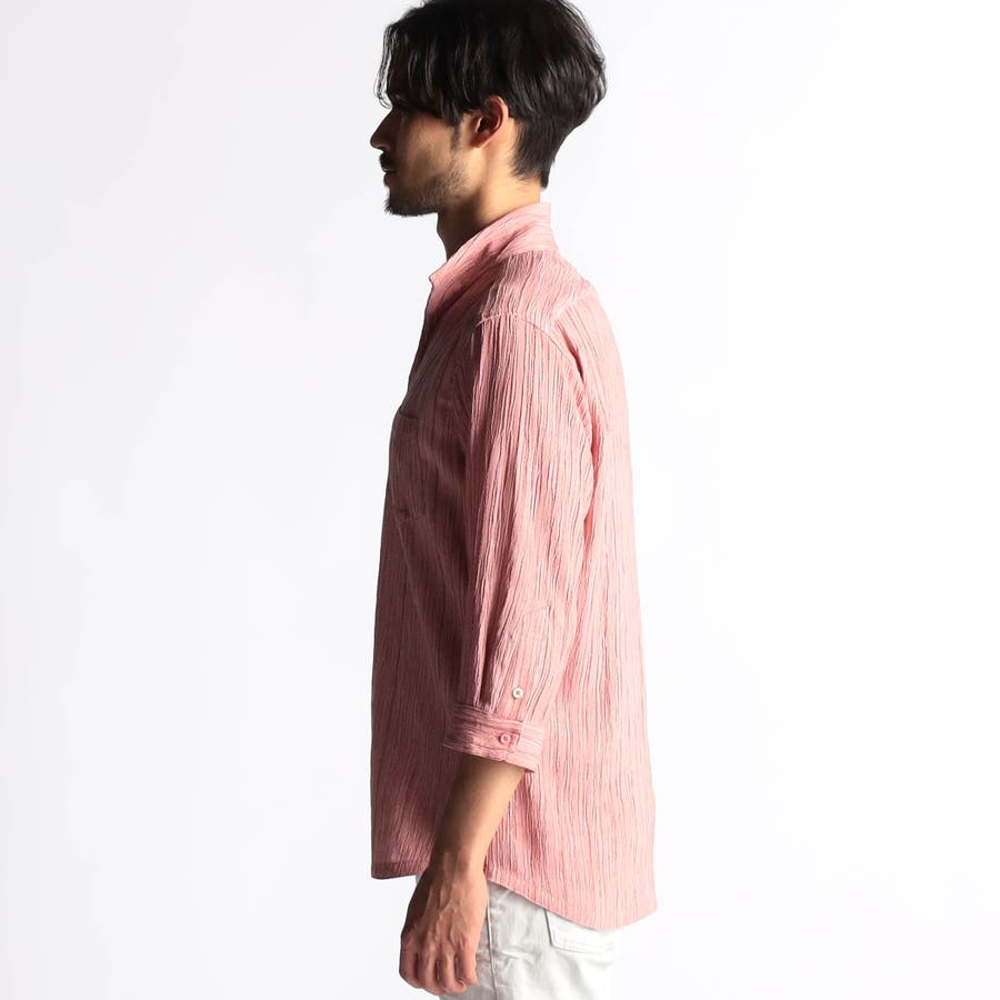 カラープリーツ7分袖スタンドカラーシャツ