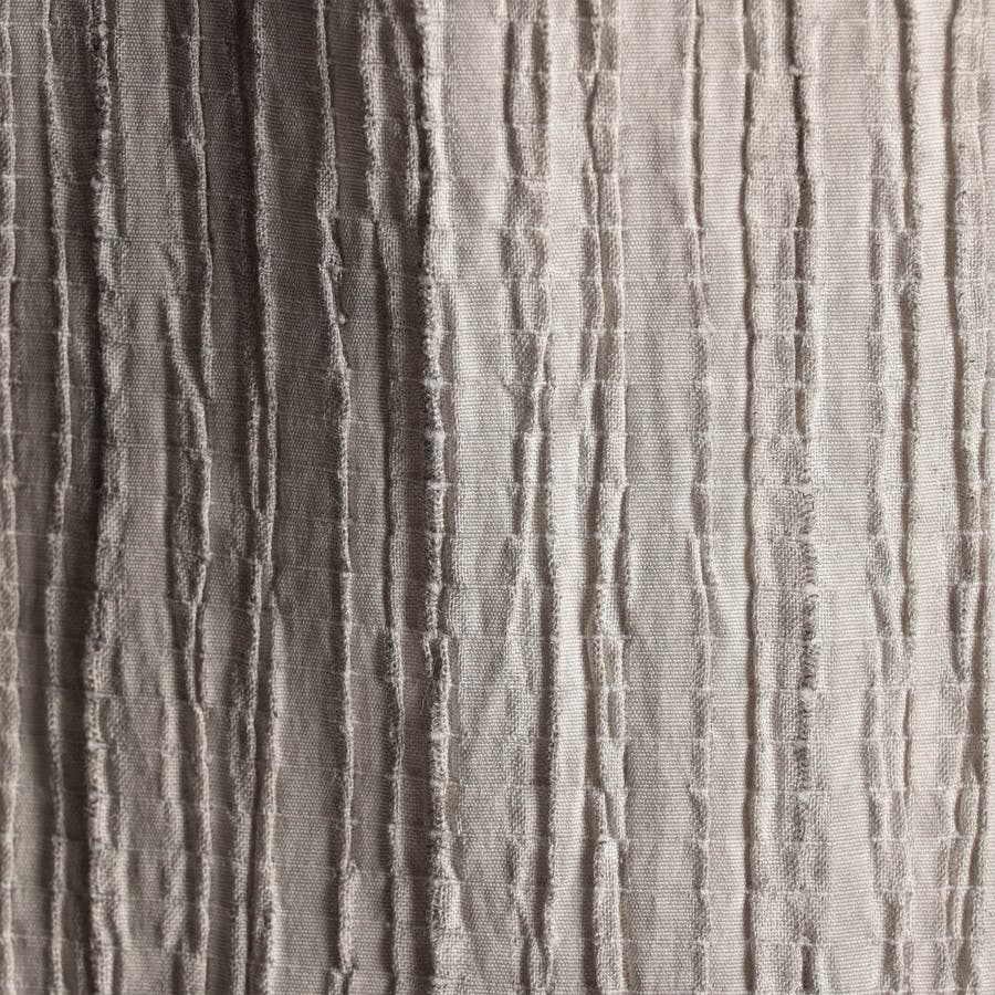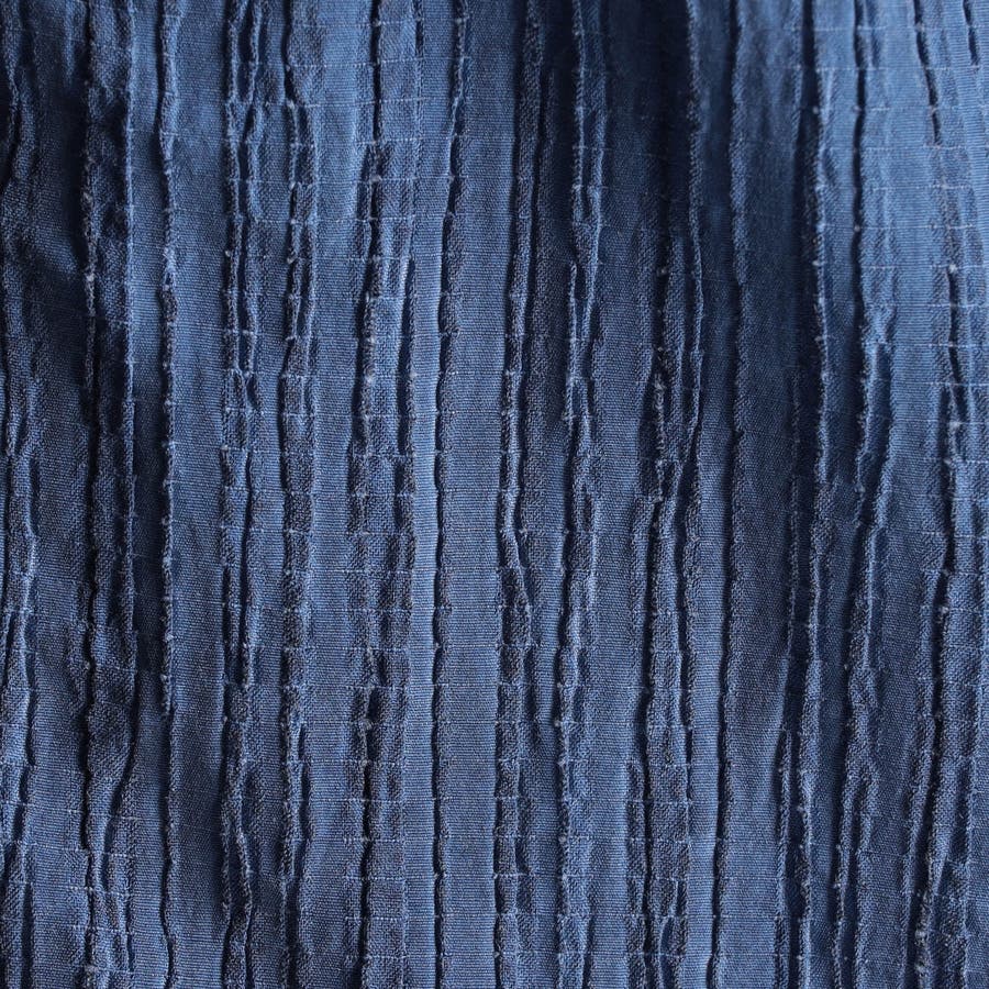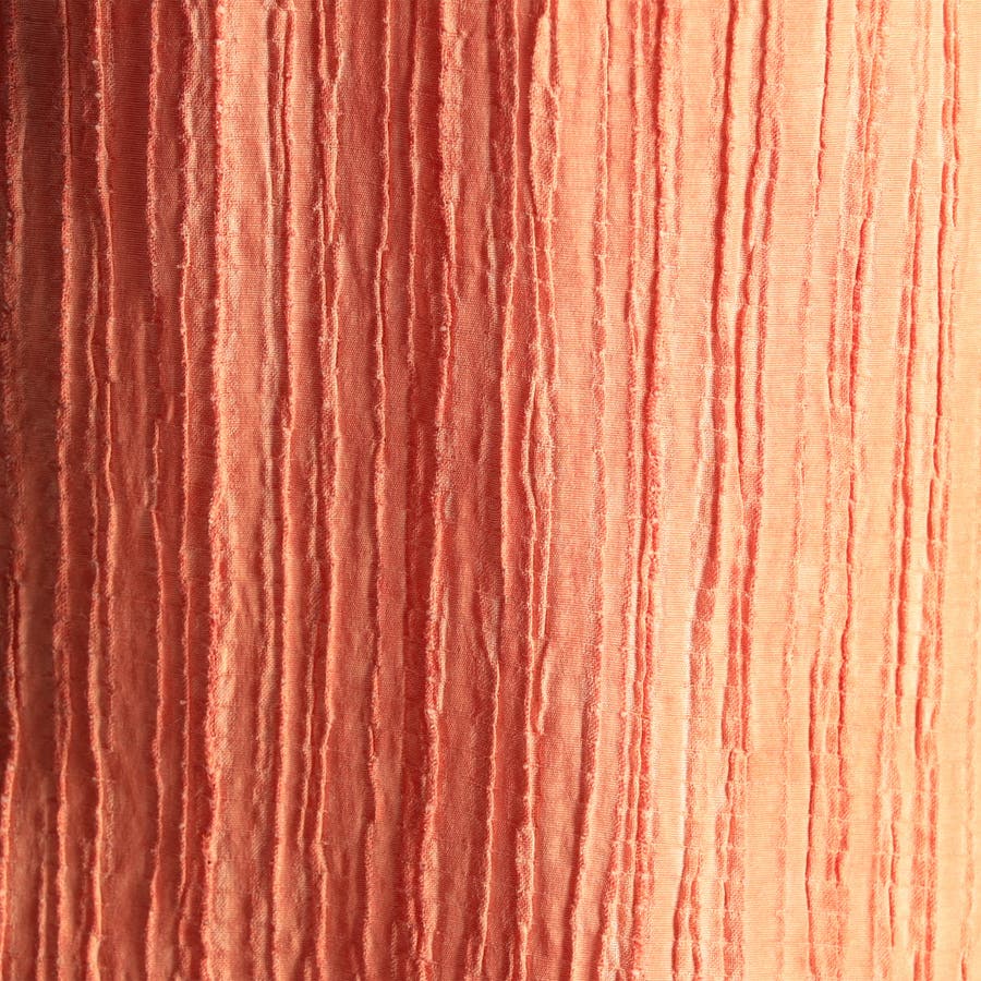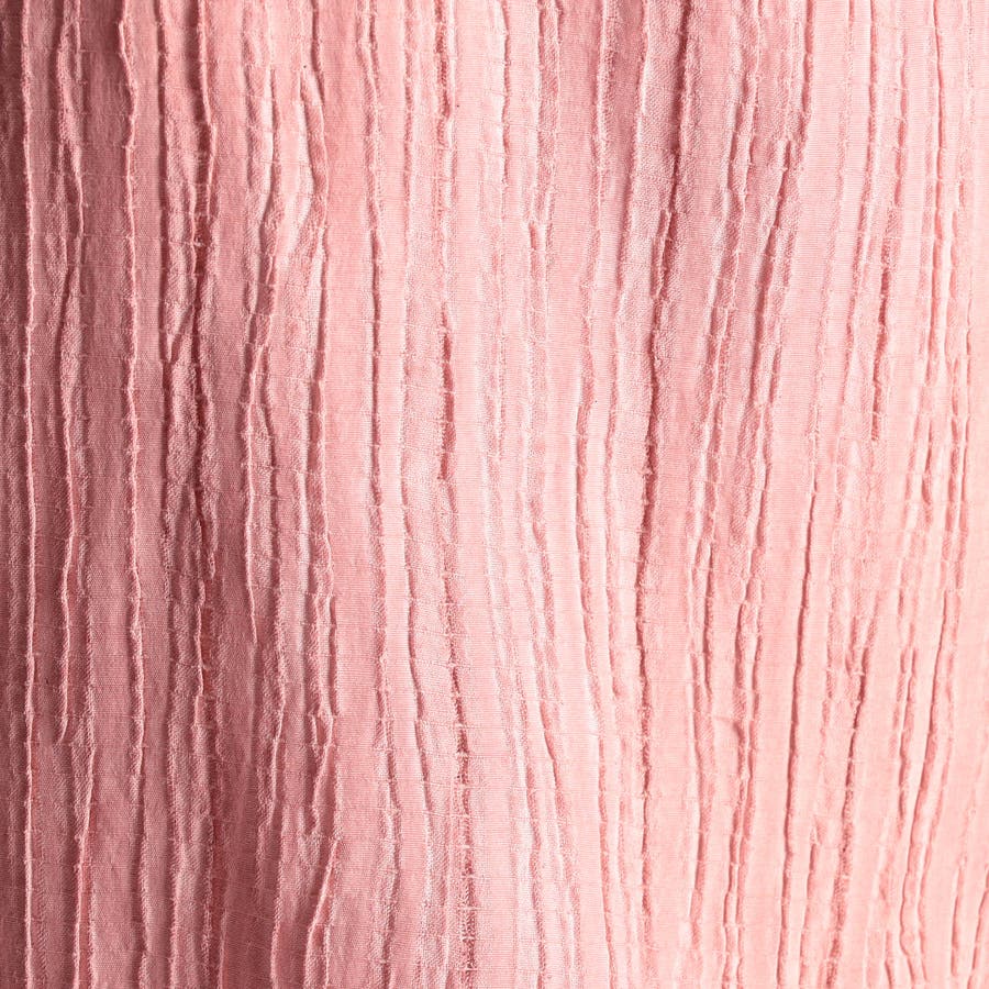 ヨコ糸にポリウレタンの伸びる糸を入れてランダムなプリーツ加工をした生地に、顔料系のカラーコーティングを施した素材です。レーヨン混になりますので、しなやかなタッチ感とストレッチ性があり、カラーコーティングした事で少し風合いを硬く仕上げ、プリーツの山谷で色の差が出る面白い素材です。今季は08ピンクが新色です。