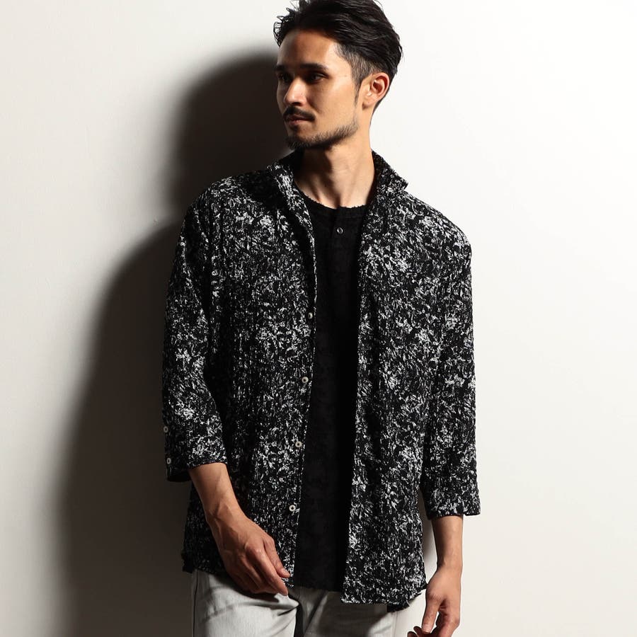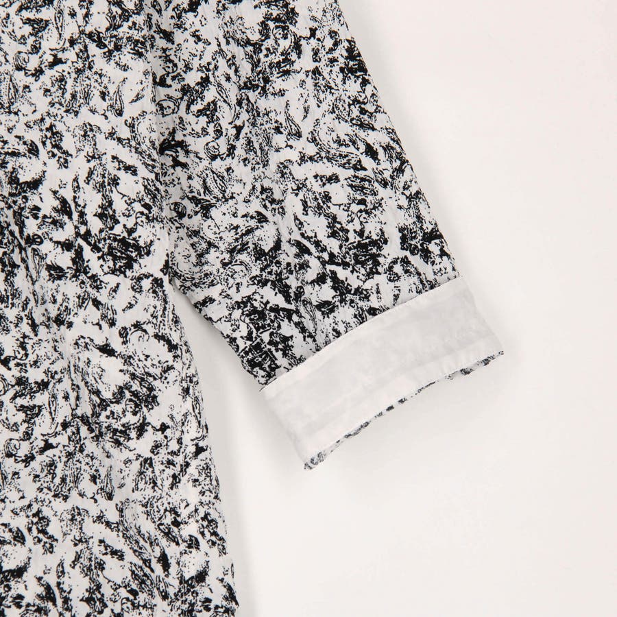 薄手のポリエステルブロード素材にプリントを施し、生地段階でワッシャー加工しています。91その他2だけ、プリント柄が違います。ワッシャー加工によって、とてもエアリーな軽さがあり、涼しげな風合いで伸縮性もありますので快適な着心地です。
