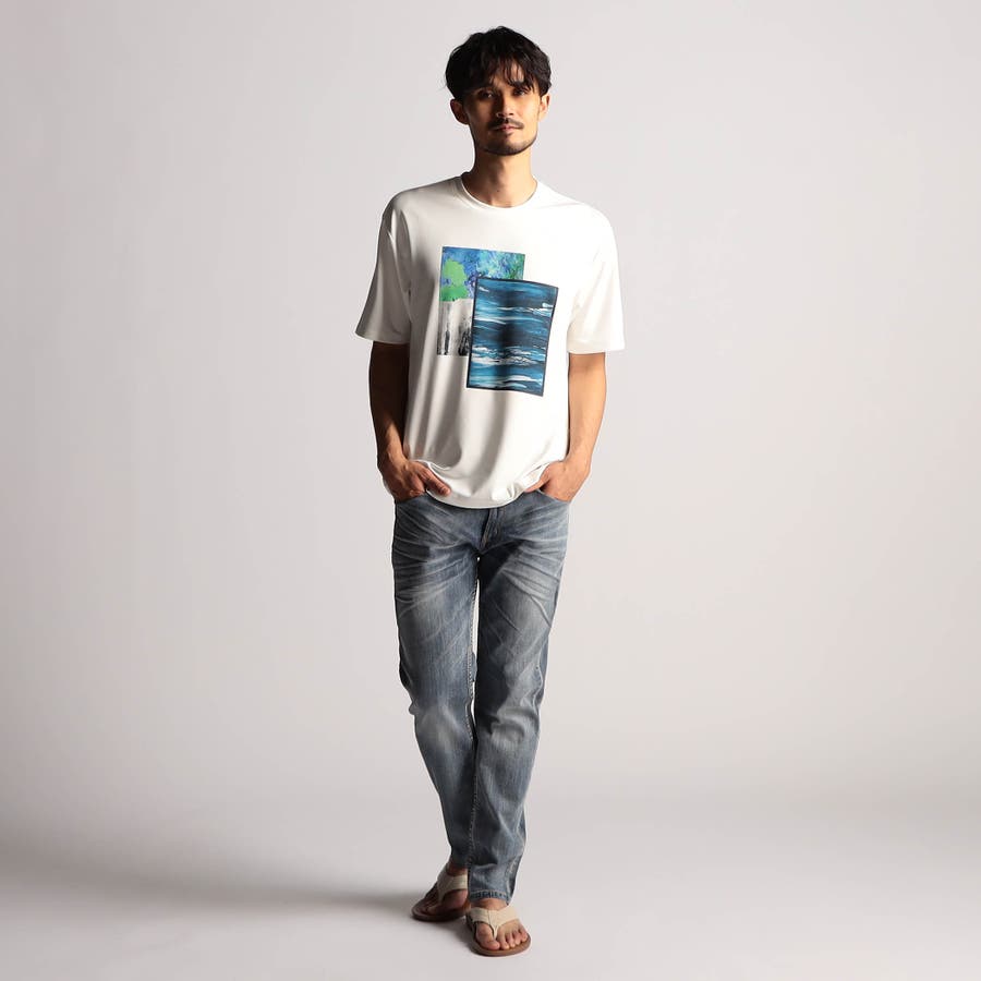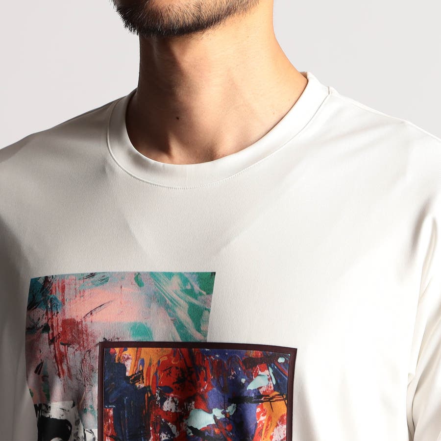 色調を合せた2枚の油絵風のグラフィックを大胆にプリントしたクルーネックTシャツ。発色に優れる昇華転写プリントで生地の風合いを損ねることなく繊細に仕上げています。