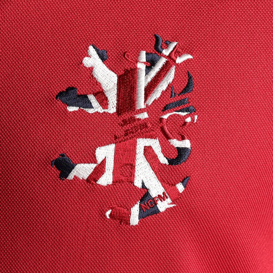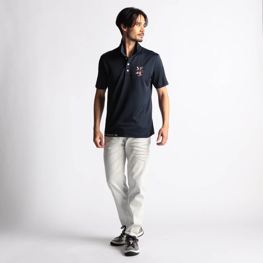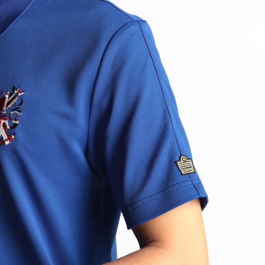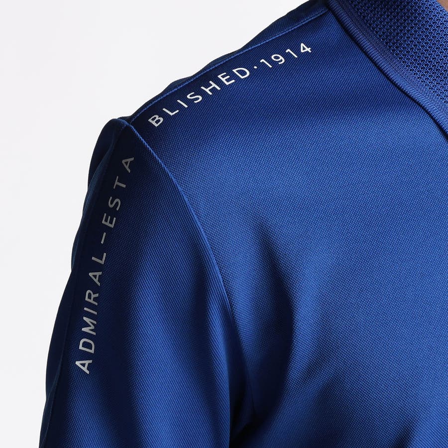 メッシュ衿とアシンメトリーに配置したコラボロゴプリントがデザインポイント。アドミラル王道のアイコン刺繍であるヴィンテージランパントをユニオンジャックと融合させたモチーフもアクセントとして効いています、モチーフのサイズ感や配置でシンプルさを追及したクールな印象のコラボポロに仕上げています。