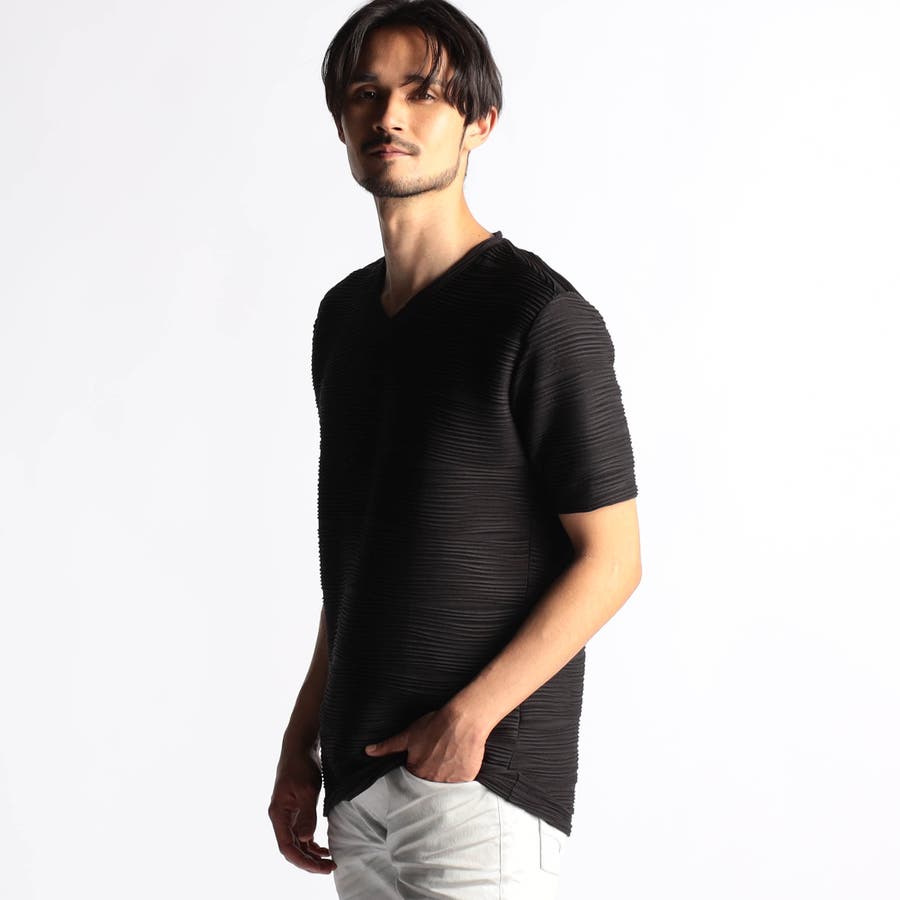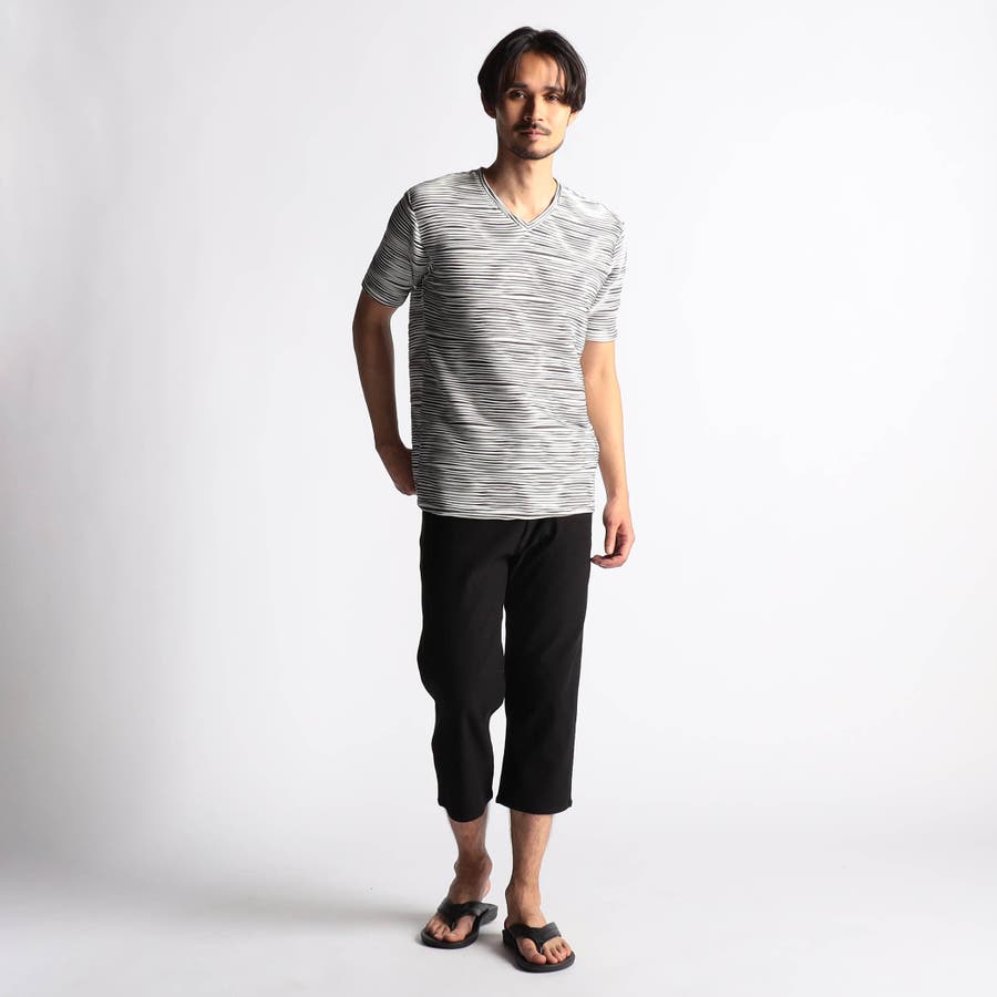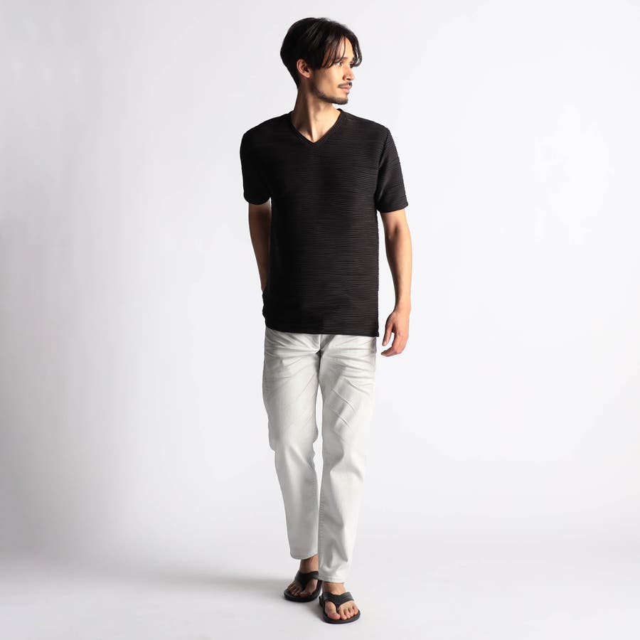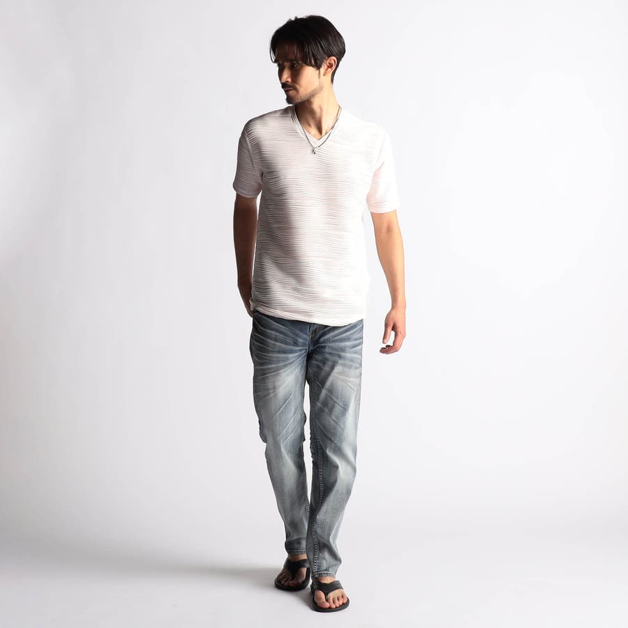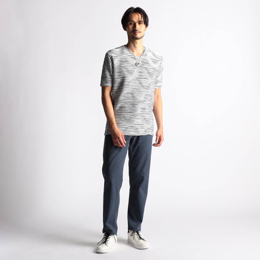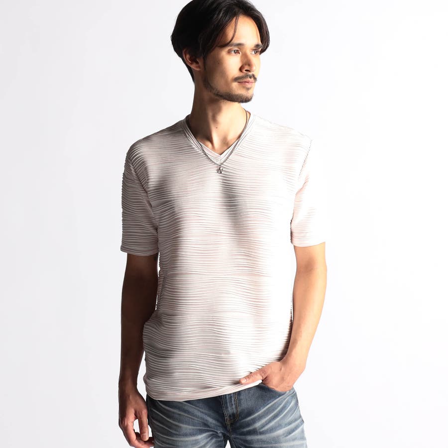 浅めVネックのシンプルなデザインで大人受けする上質なカットソーに仕上げました。独特なジャカード゛柄の表情豊かなテキスタイルデザインがスタイリングを魅力的に演出してくれる一着。インナーとしては勿論、1枚で着ても存在感抜群な仕上がりになっています。