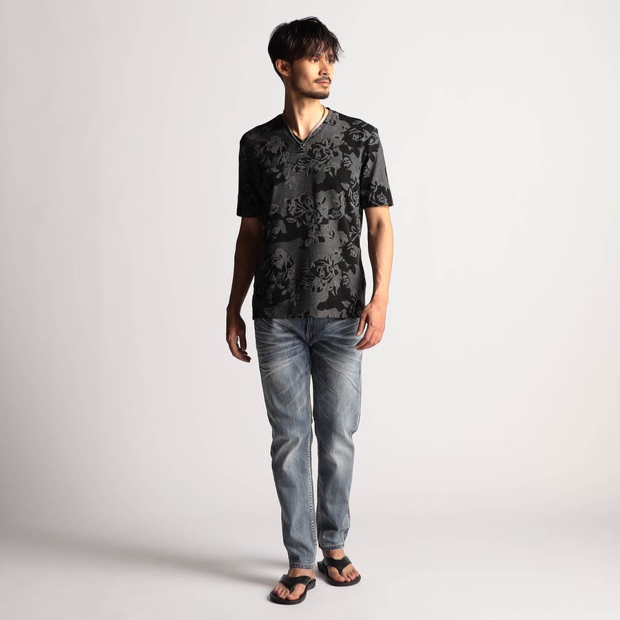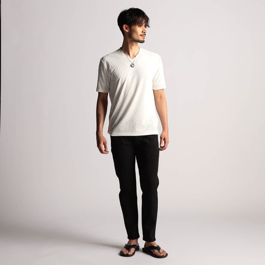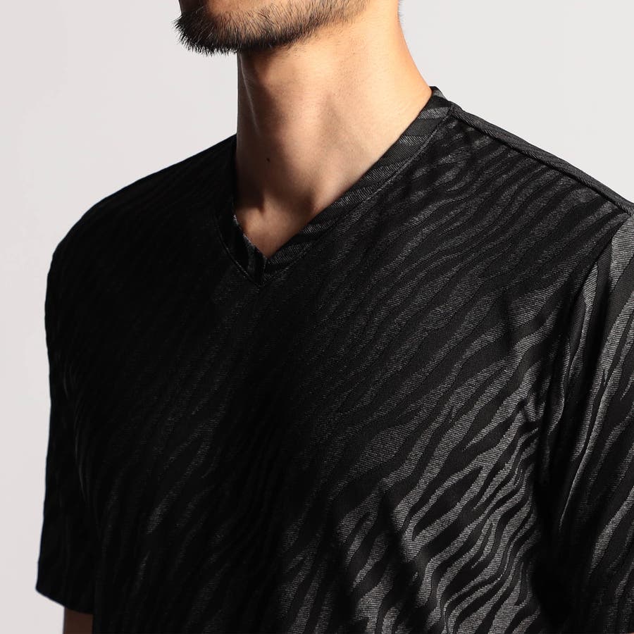 艶っぽい素材感にマッチしたシンプルなVネック。やや細身のシャープなシルエットで展開します。