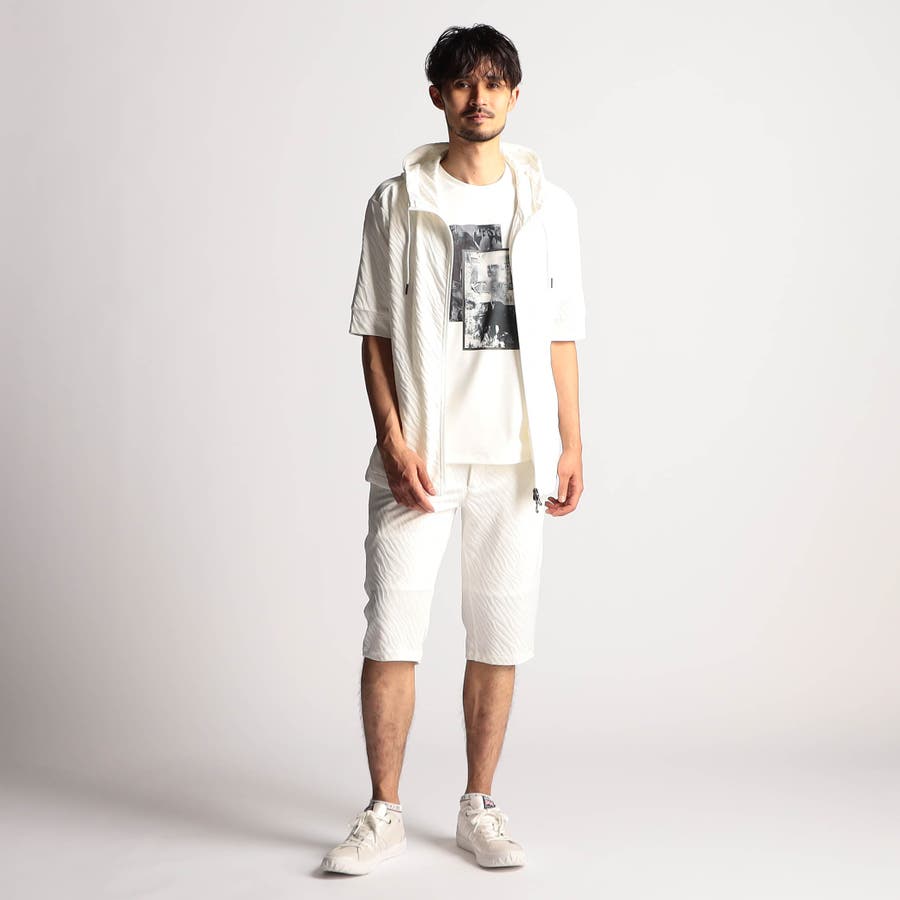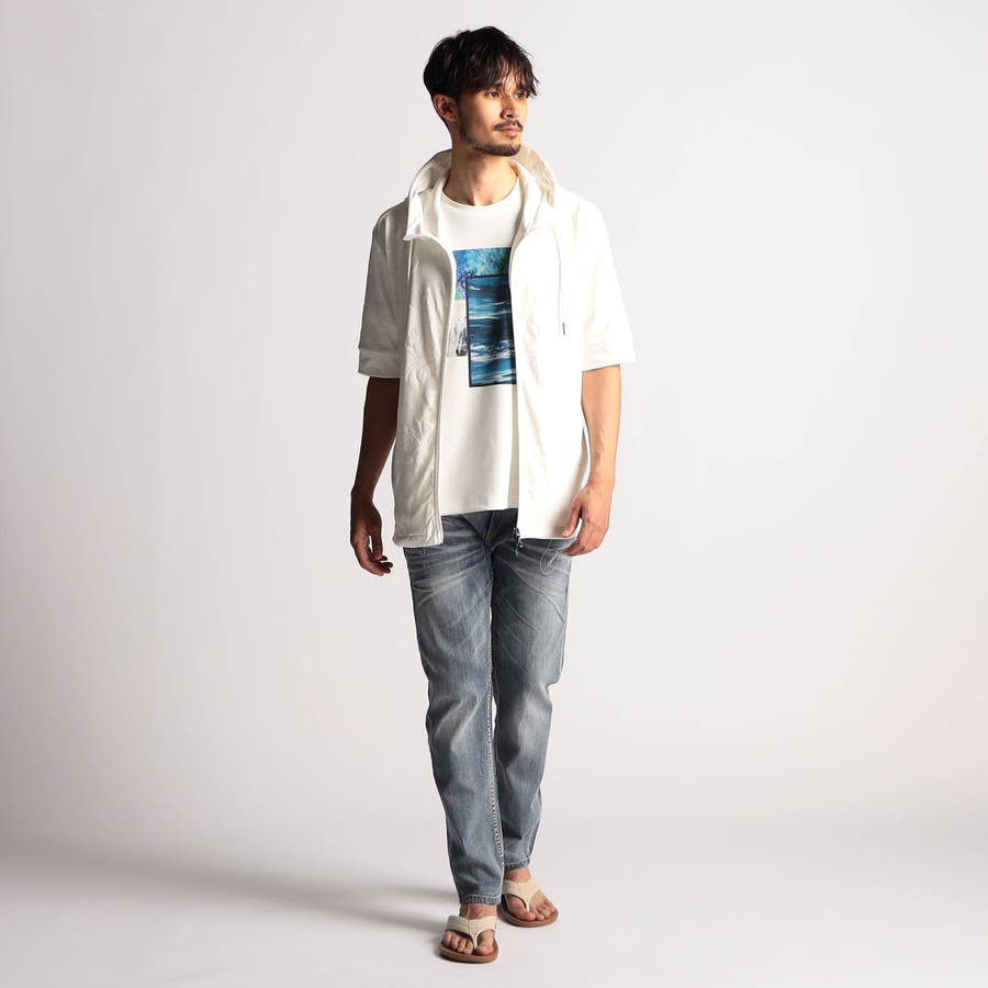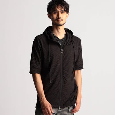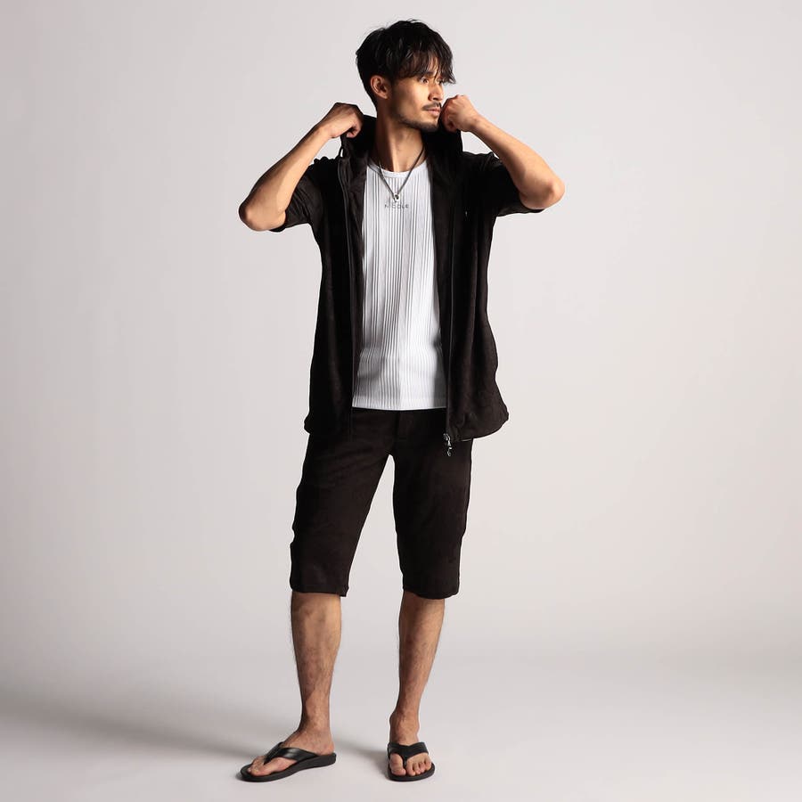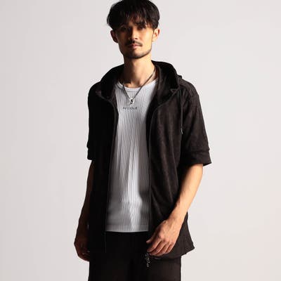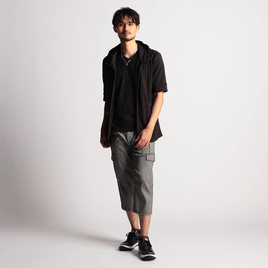 フルジップの5分袖パーカ。軽くて柔らかく快適な着用感が魅力。速乾性と防シワ性にも優れています。夏場でもサラッと羽織れ、タンクトップやTシャツにプラスすることであっさりし過ぎる夏のコーディネイトのアクセントになります。
