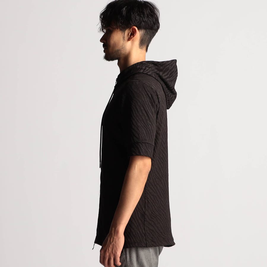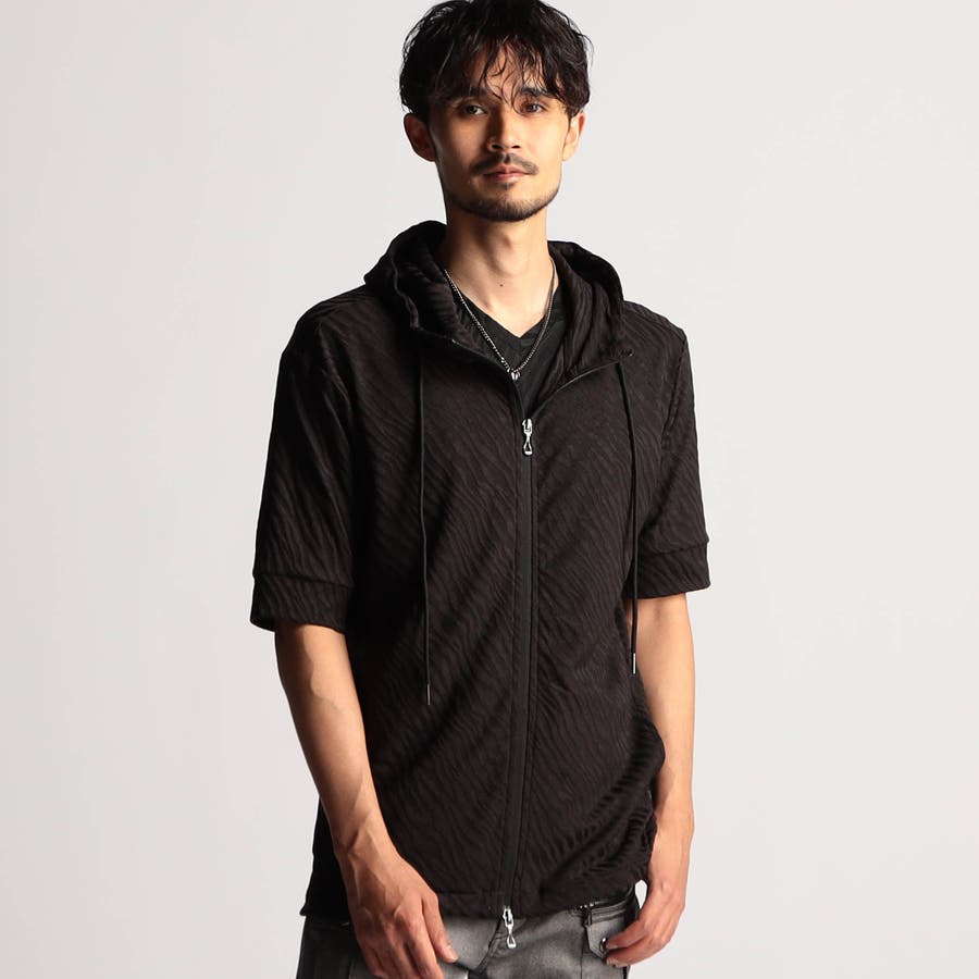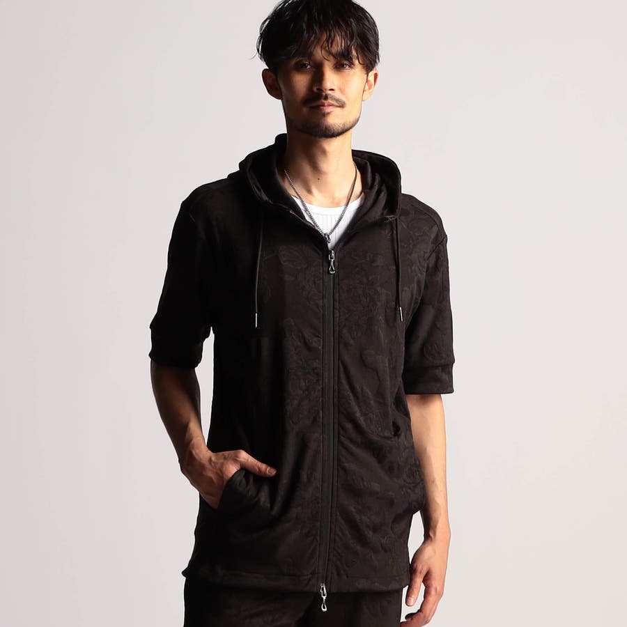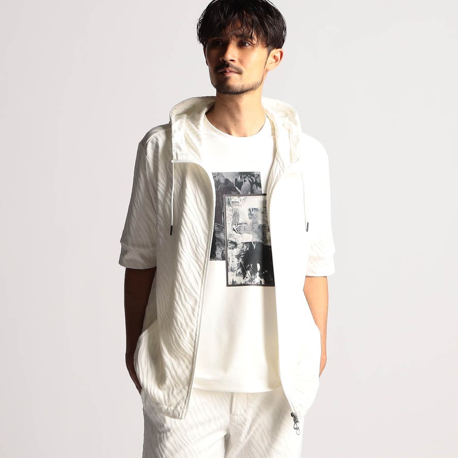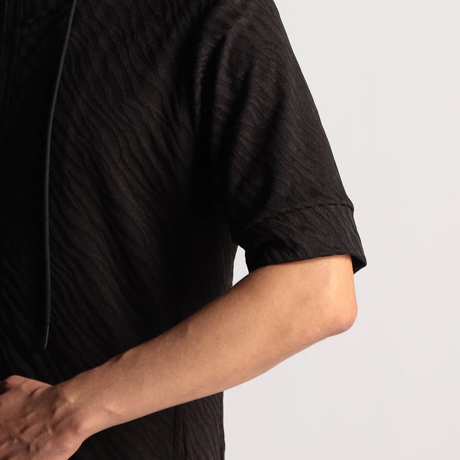 フルジップの5分袖パーカ。軽くて柔らかく快適な着用感が魅力。速乾性と防シワ性にも優れています。夏場でもサラッと羽織れ、タンクトップやTシャツにプラスすることであっさりし過ぎる夏のコーディネイトのアクセントになります。