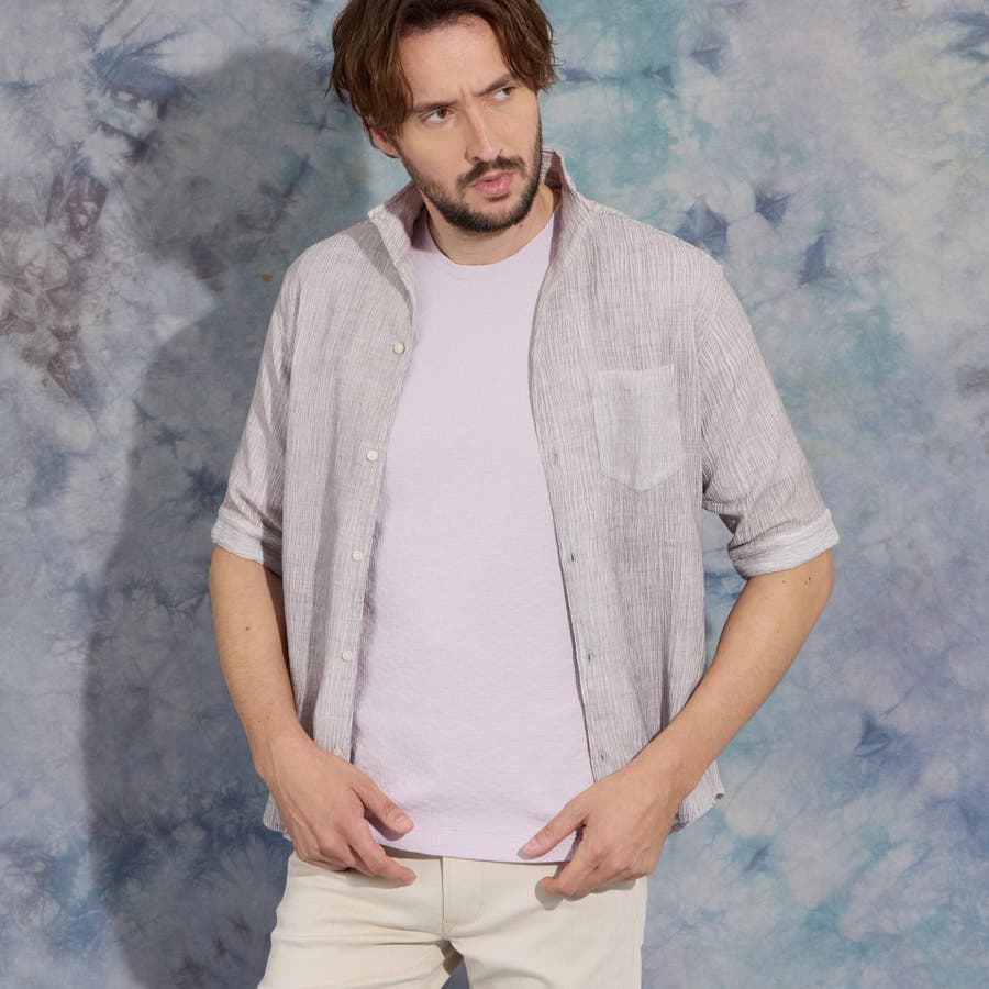 カラークレープ5分袖シャツ