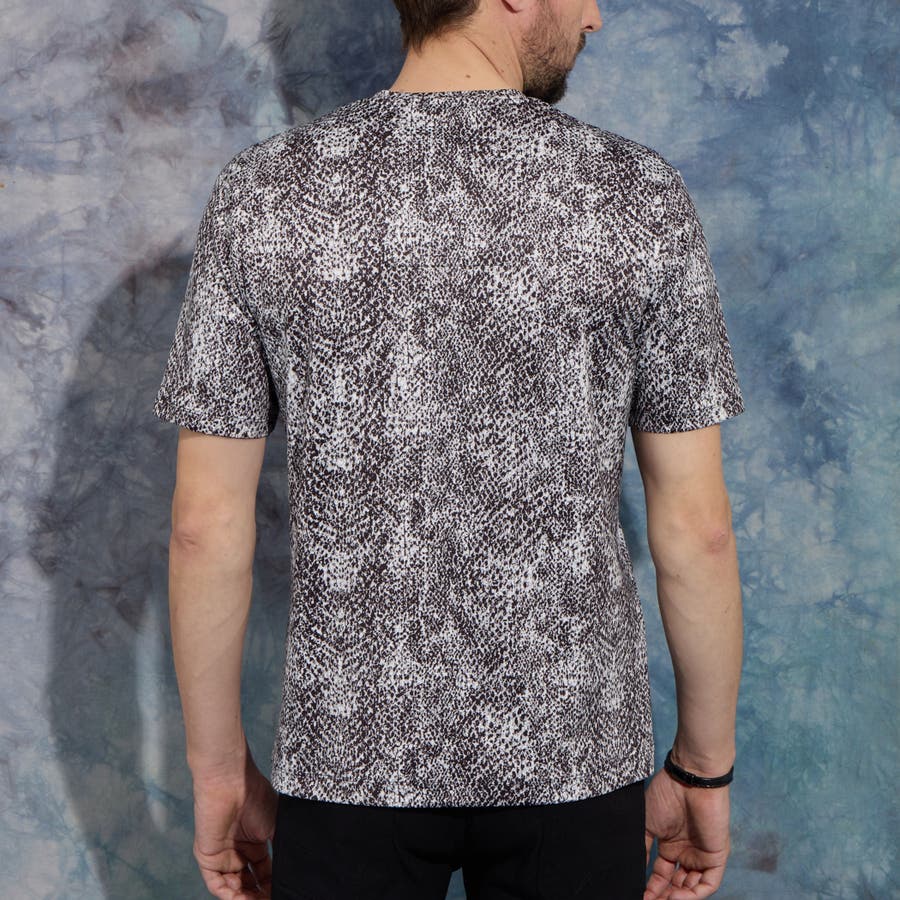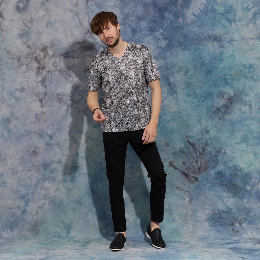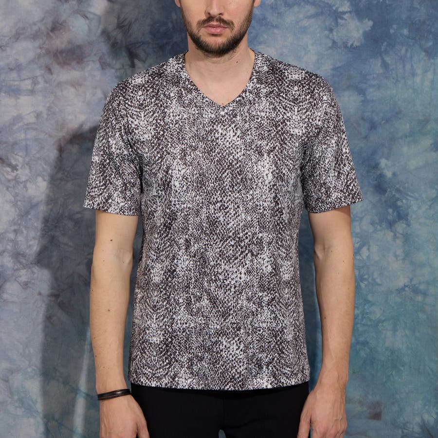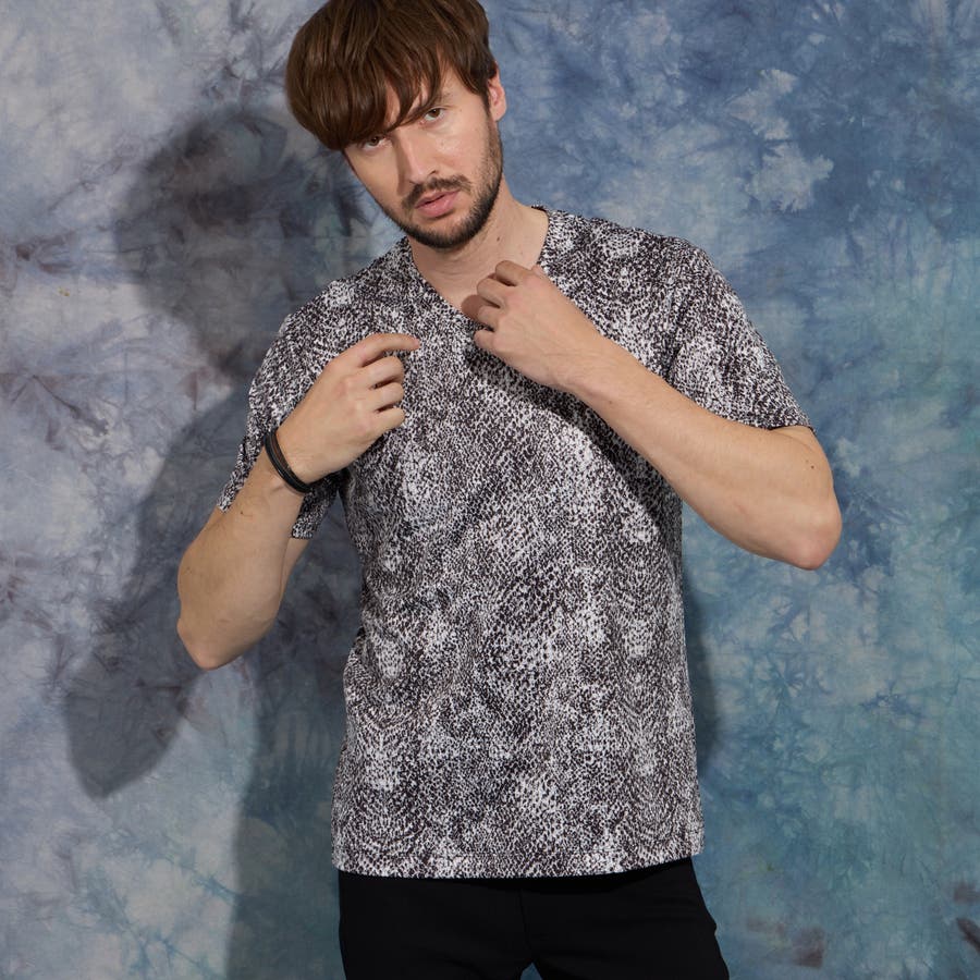 パイソン柄プリントVネック半袖Tシャツ