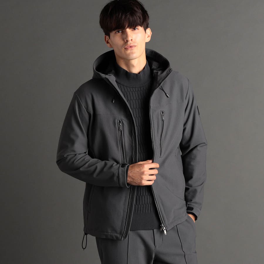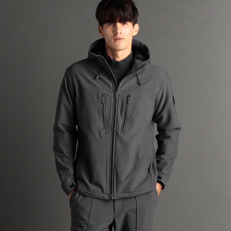 スポーティーなソフトシェルフーディー。