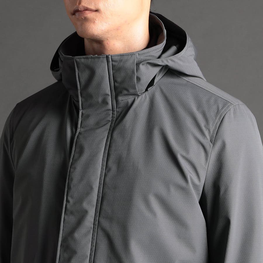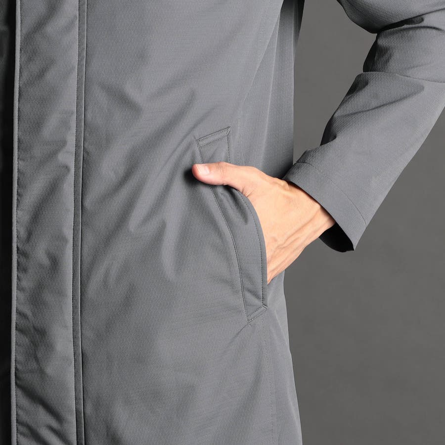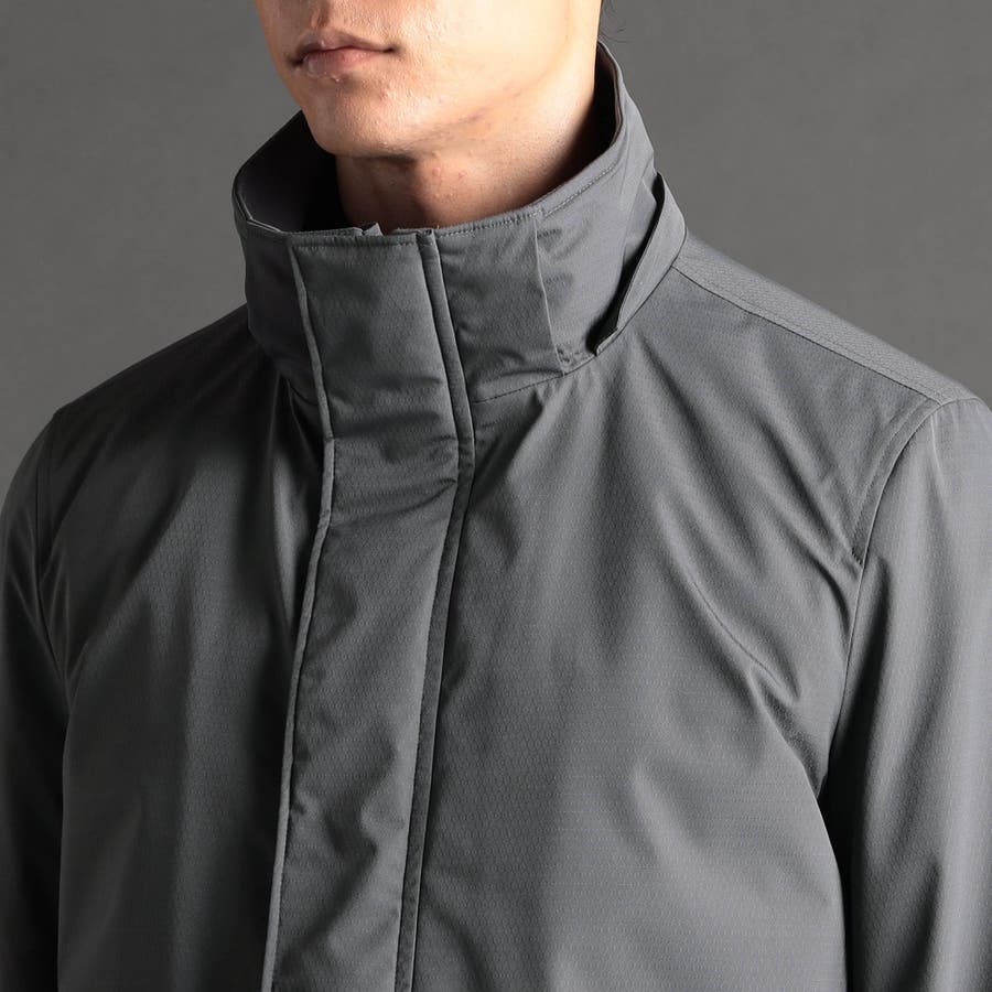 裏面にポリウレタンラミネートを施したマイクロドビー素材を採用。上品な表面感と張り感が特徴で、軽量、防風の機能性を装備したハイブリッド素材。