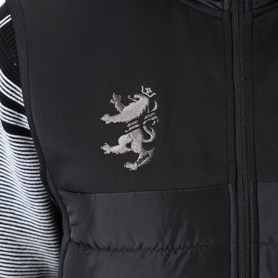 アドミラル別注パテッド・ベスト。動きやすさを追及したシンプル且つ機能的なデザイン。アイコンモチーフのユニオンジャックとランパントは高級感のある刺繍で表現。アクセントのプリントも厚盛りラバーでオリジナリティを高めています。前身パテッド部分と後身裏の中綿仕様、ヒート系裏地で保温性も高めスポーツシーンからタウンユースまで、様々なシチュエーションで活躍するアイテムです。