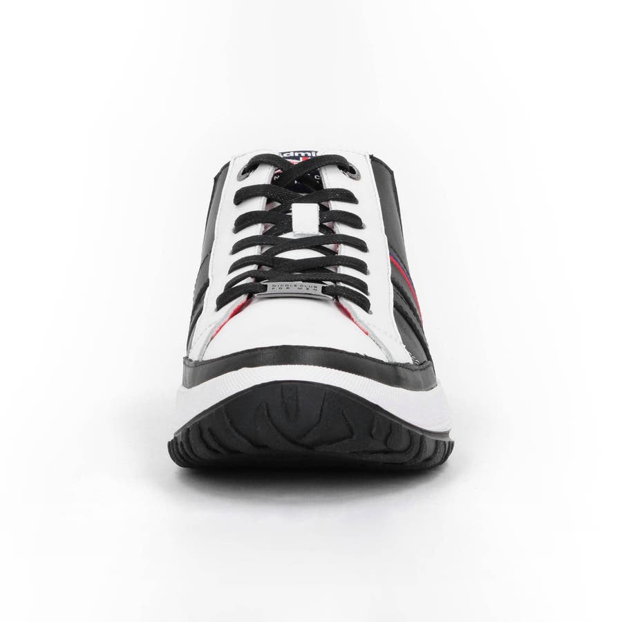 牛革を採用したオールレザー仕様。ライニングとインソールには赤のポリエステルメッシュ素材を採用していますが、色落ちの生地データはクリアしたものを使用しています。09ホワイトはコーディネートしやすいオールラウンダー、49ブラックは白と黒のパンダ仕様で差別化を図っています。