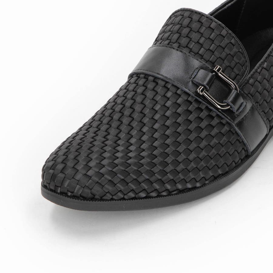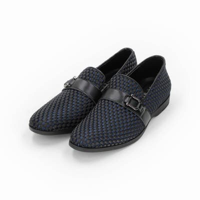 ローファーデザインのスニーカーソールスリッポンシューズ。シャープなシルエットで少し細長いの綺麗なラスト(木型)を採用。ナイロンコードを編み込み、アッパー素材にした新素材シューズ。アクセントに黒の牛革とビット金具を使いドレッシーな雰囲気に作っています。少しヒールが付いた軽量の合成ゴムソール、クッション性の高いインソール採用しているのでスニーカーライクな履き心地です。