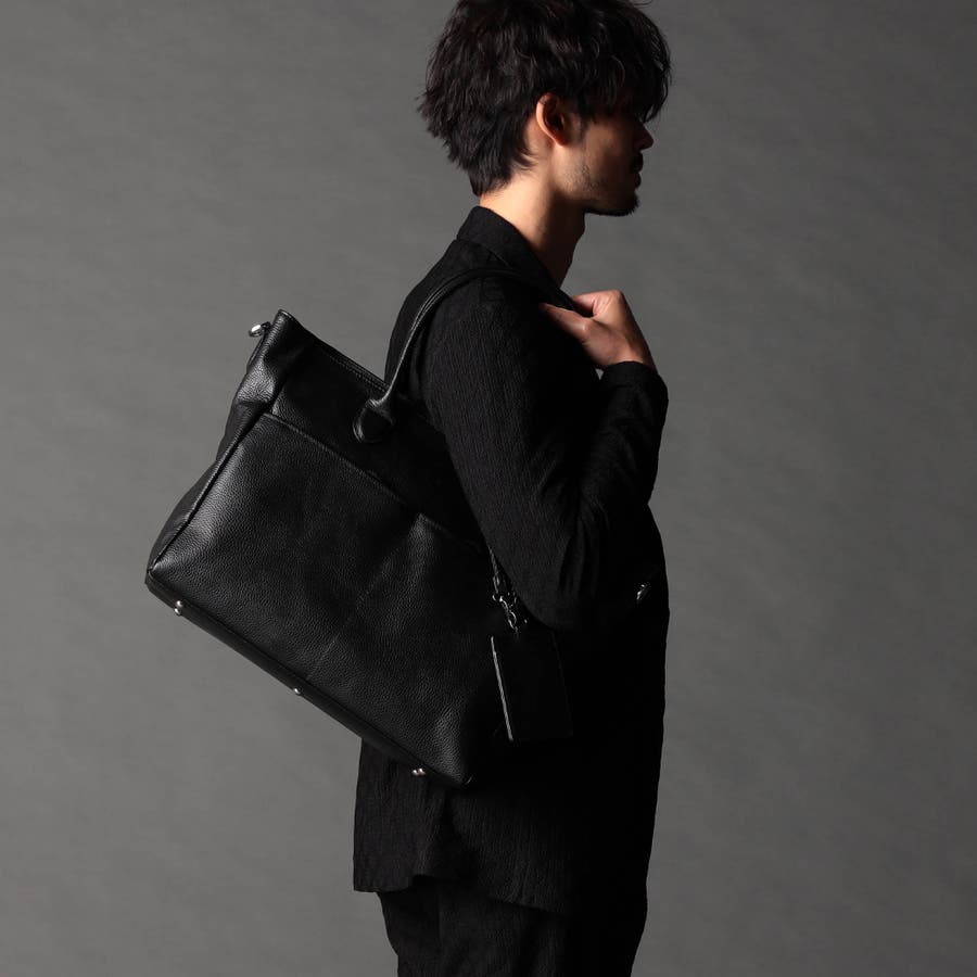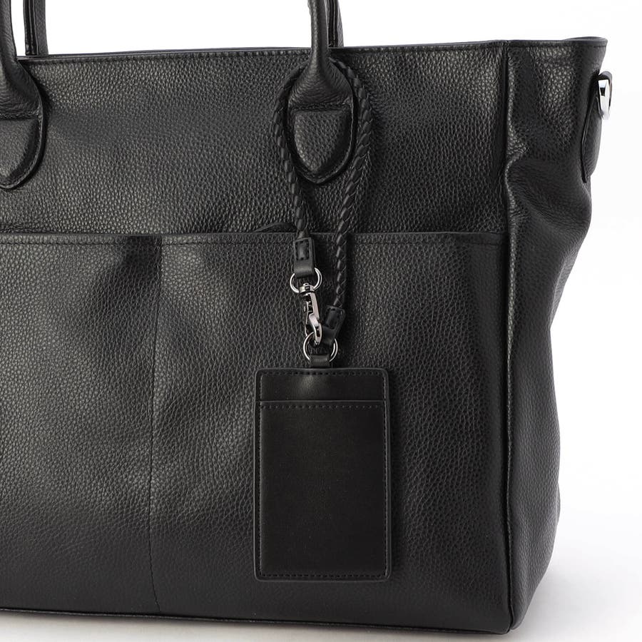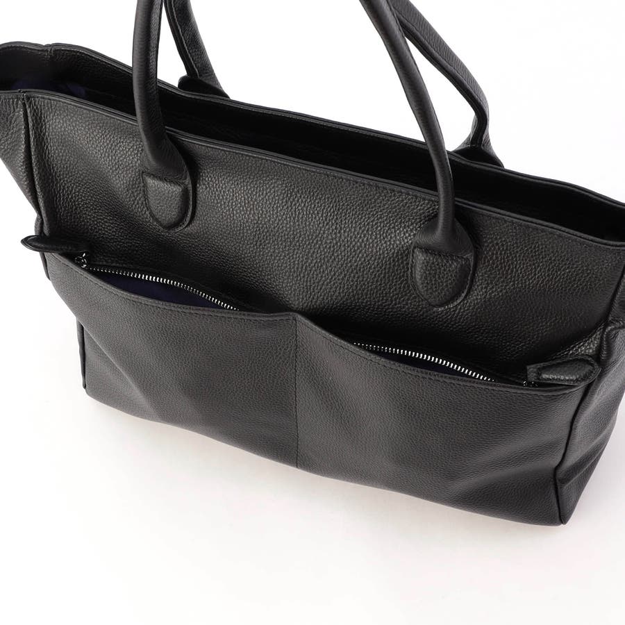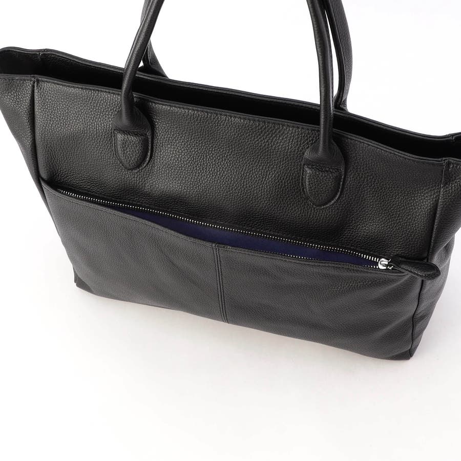 牛本革を贅沢に使用したレザートートバッグ。フロントのファスナーポケットや内装には荷物の仕分けに便利なポケットを設けて利便性を高めました。斜め掛けができるようショルダーベルトも付属した2WAY仕様でカジュアルからビジネスまで幅広いシーンで活躍してくれます。ブランドロゴ刻印入りのパスケースも付属しています。