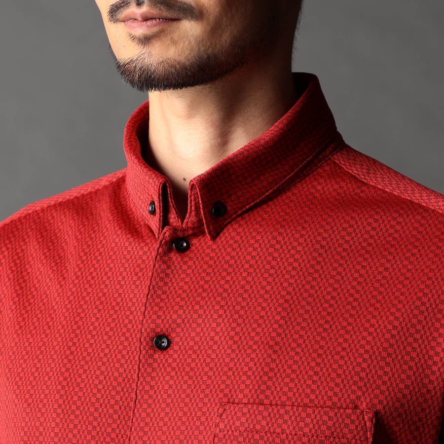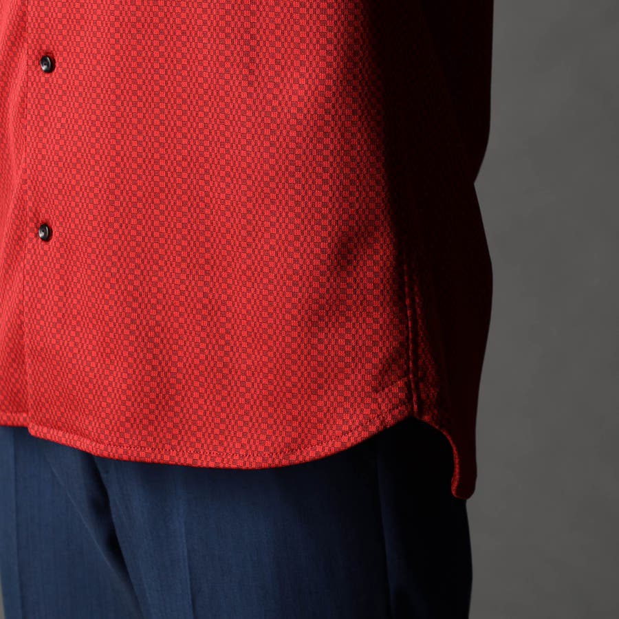 ジオメトリックスタンドボタンダウンシャツ