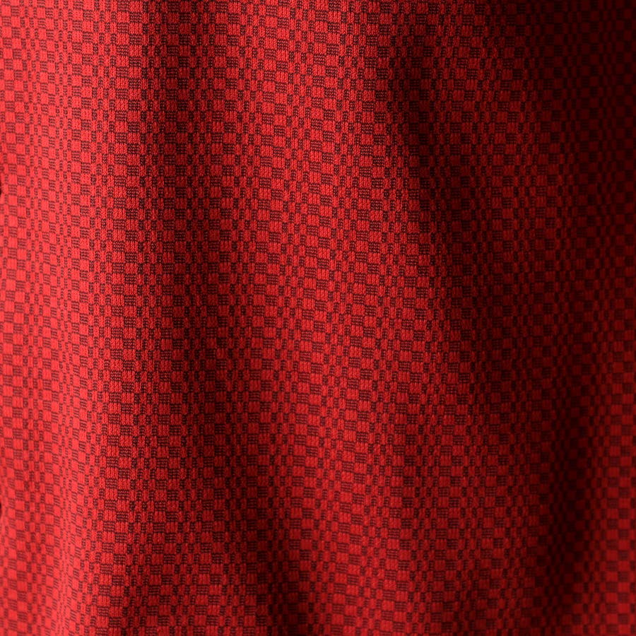 先染めストレッチポリエステルのジオメトリック柄ジャカード素材です。マルチなストレッチ性、防シワ性に優れた機能素材なので取り扱いも楽です。