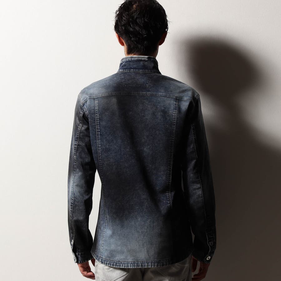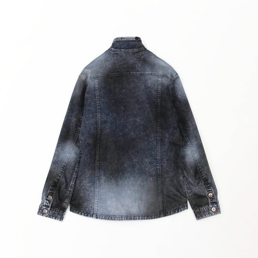 Gジャンの衿付け工程を取り入れたのスタンドシャツブルゾン。オリジナルのタック釦を使用し、Gジャン感覚の一重で軽く羽織れるシャツです。素材と加工で、他には無いリエラボらしい大人カジュアルなアイテムに仕上げています。衿端にはワイヤーを入れ、カモフラ裏地をポイントに使用しています。