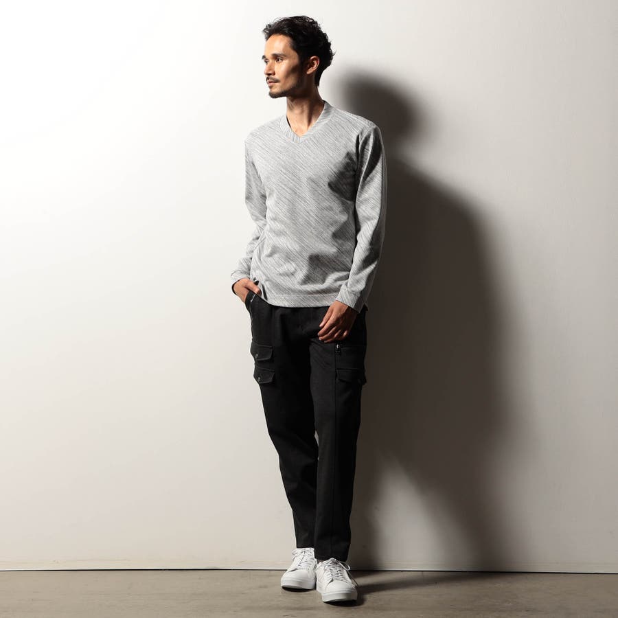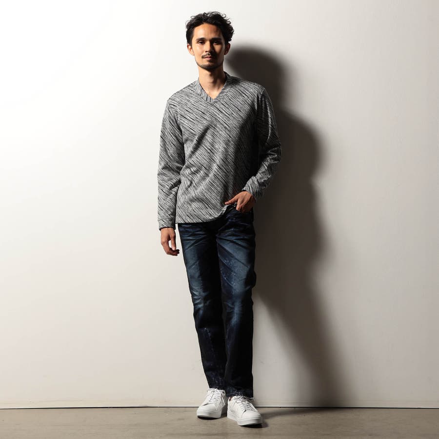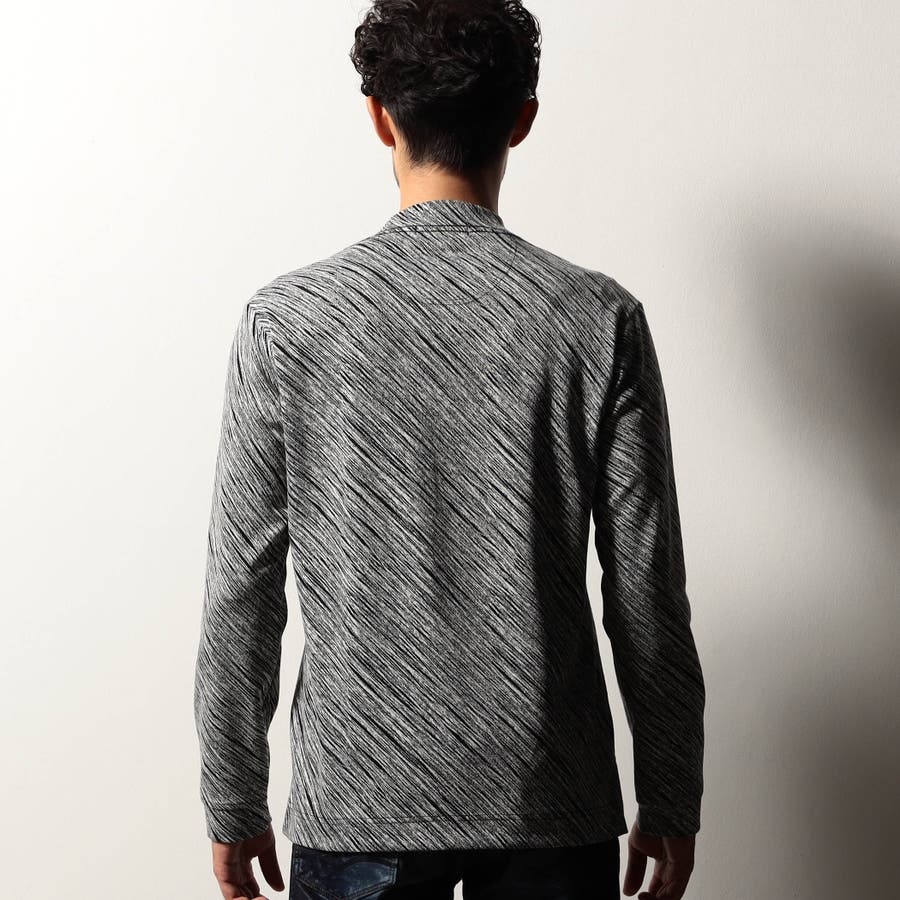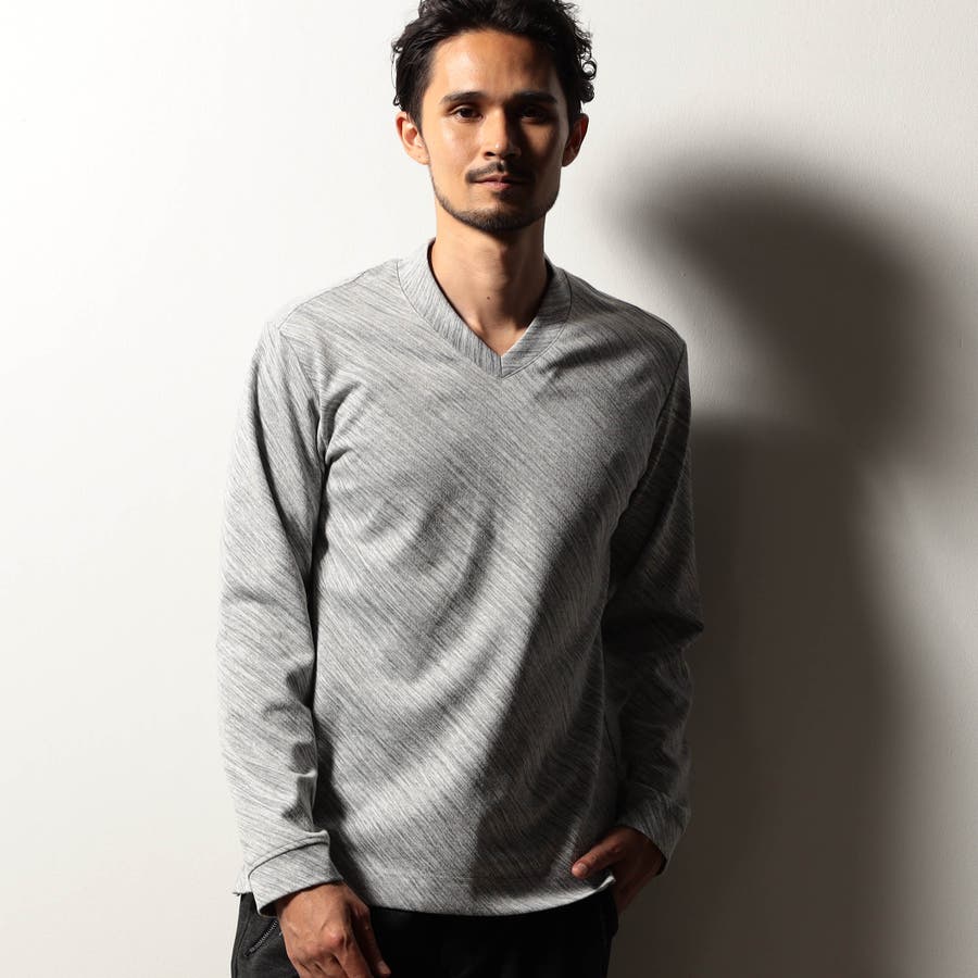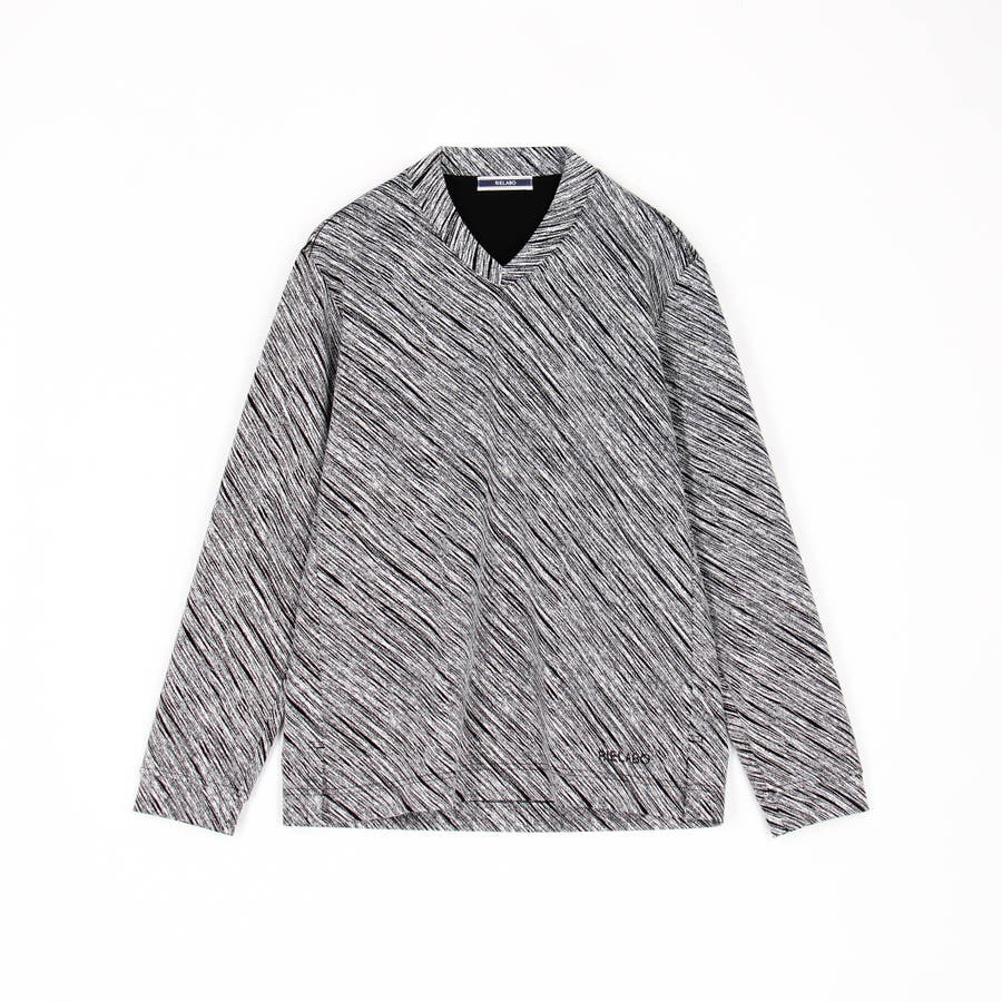 配色の異なる地柄ジャカード素材を使用したVネックカットソー。後衿を高めに設定したドレスカラー仕様でスタイリッシュな印象を演出しつつ、ジャケット等アウターへの衿汚れを軽減してくれるインナー使いにもピッタリな一着。肩から後衿にかけては別生地を使用したタコバインダー始末で型崩れを軽減、脇の縫い代には抗菌防臭テープを仕込んで機能性をプラスしています。