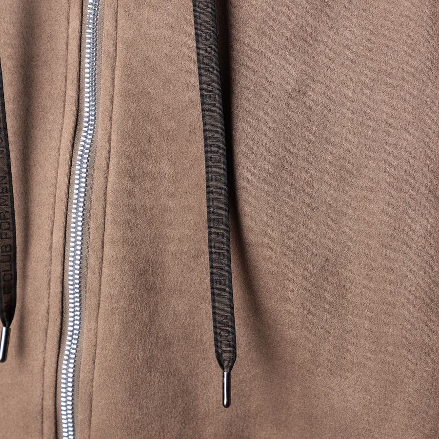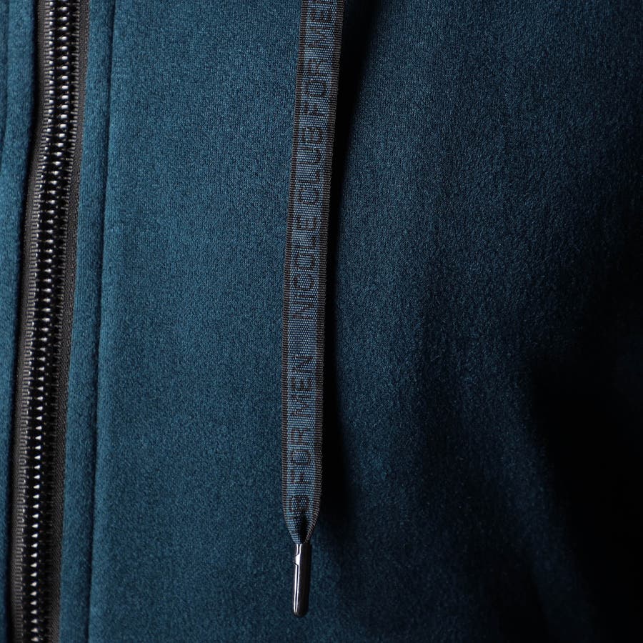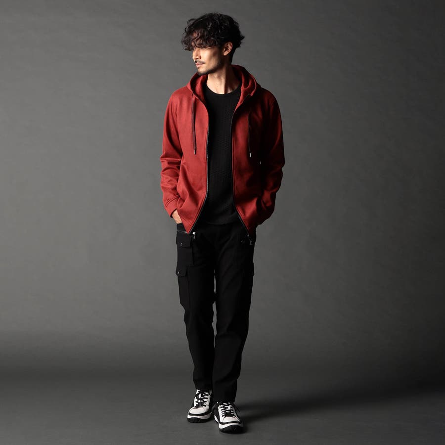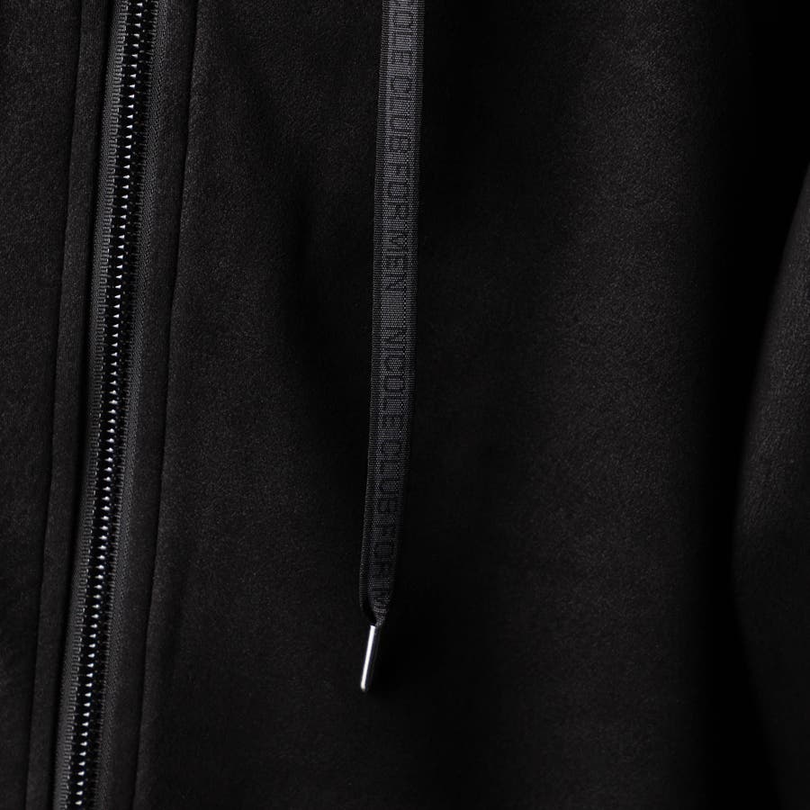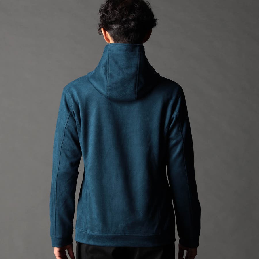 細腹をとった3枚接ぎに作る事で立体的、綺麗なシルエットのハイネックジップアップパーカーです。袖も2枚接ぎする事でセットイン縫製で綺麗に見え、普通のパーカーとは一線を画すモ-ドテイストに仕上げています。オリジナルのロゴ入りジャカードテープをフードスピンドルに採用し、切替を活かしたシームポケットはスッキリしたデザインで、左裾にブランドロゴの同色刺繍を入れています。秋にはTシャツの上に羽織るのに丁度よい肉厚感とサイズ感で、冬はコートの下に着用しても着ぶくれしないスッキリしたシルエットです。製品で撥水加工を施して防汚効果をつけています。