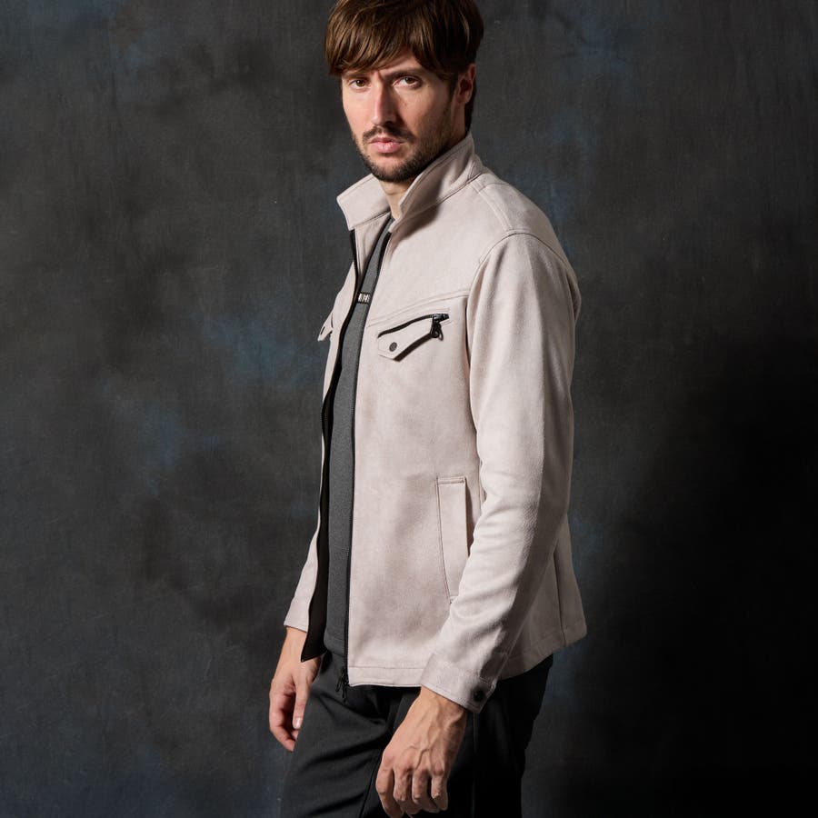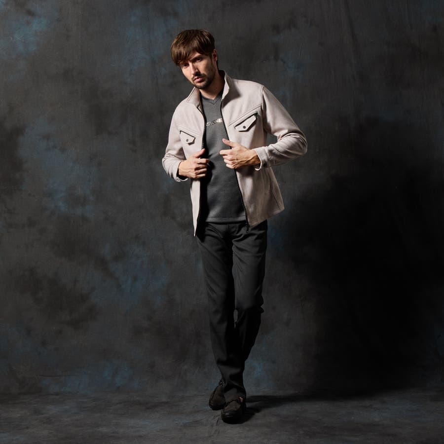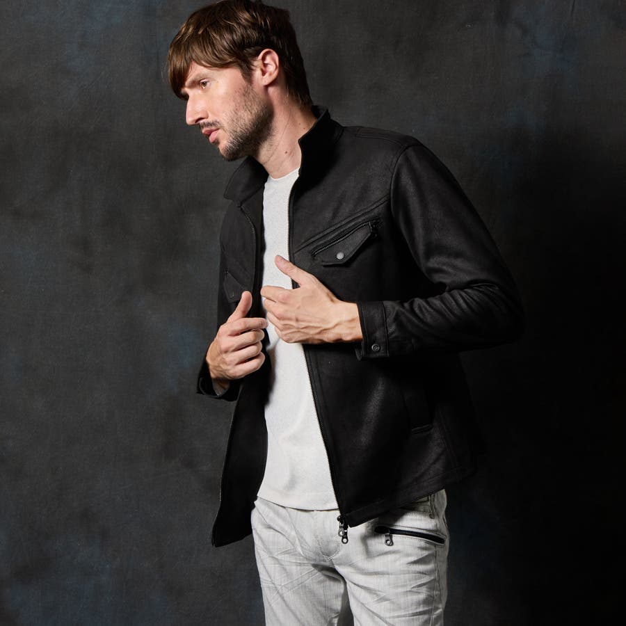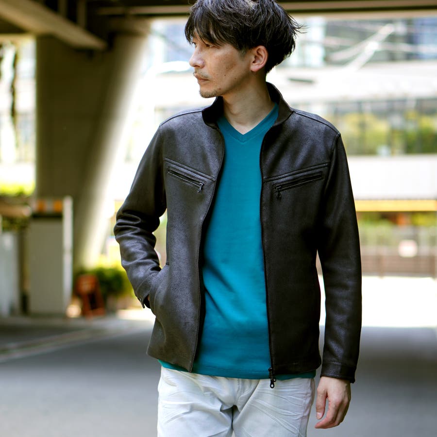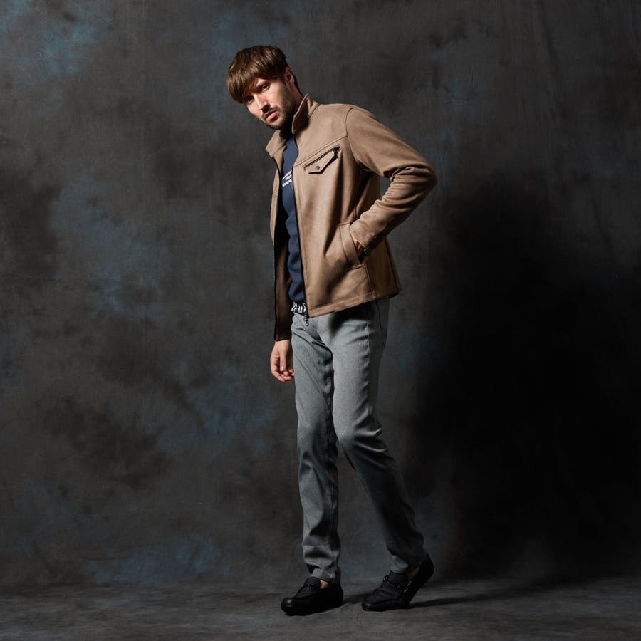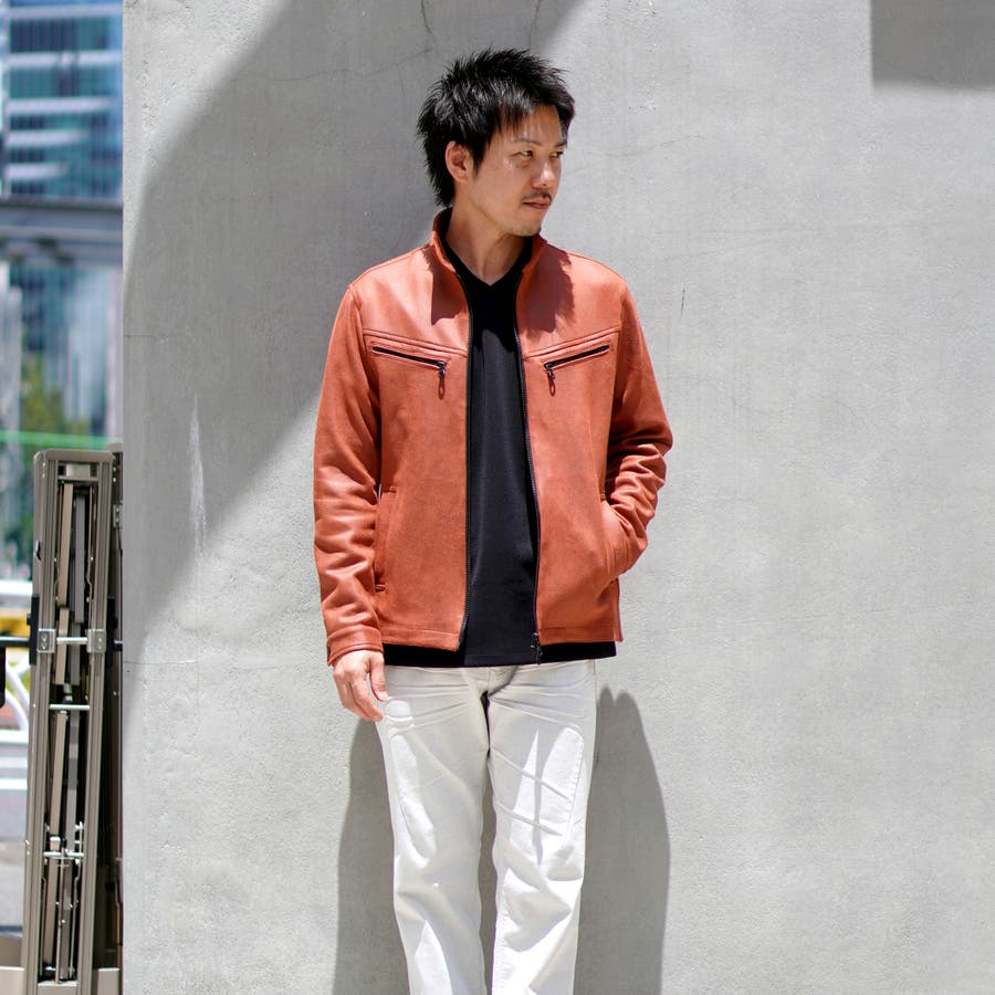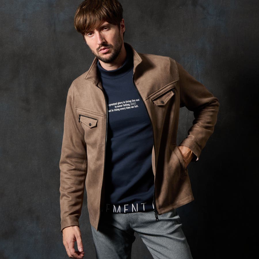 柔らかスエード風起毛素材を使用したライダース風ブルゾン。