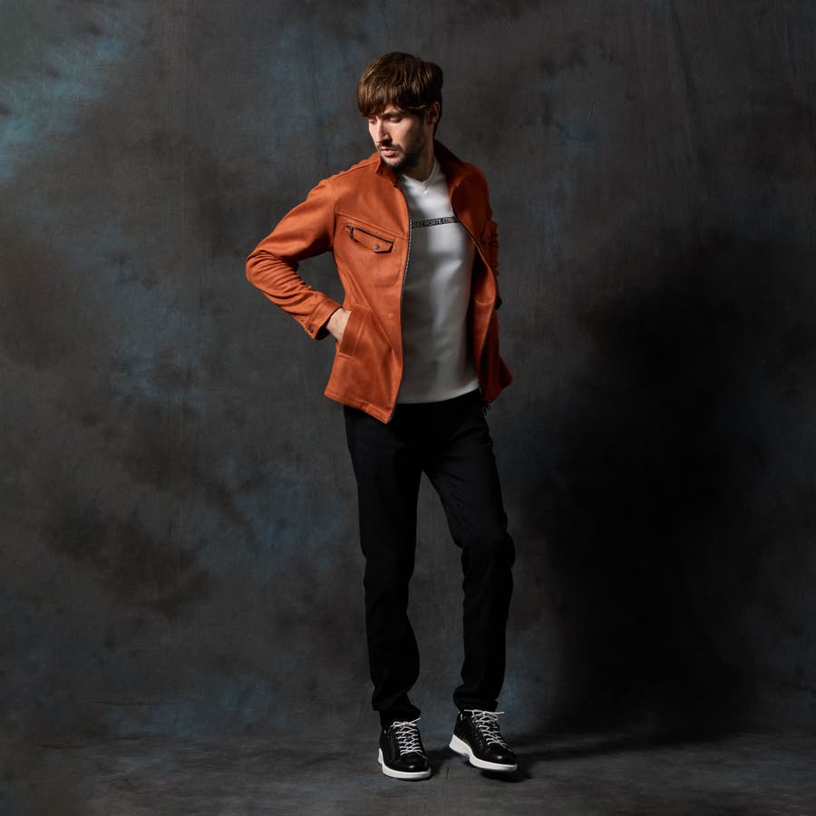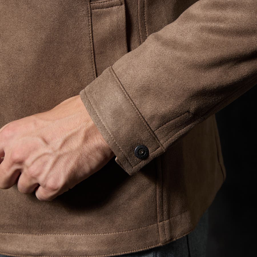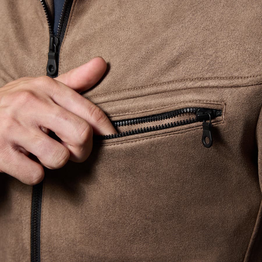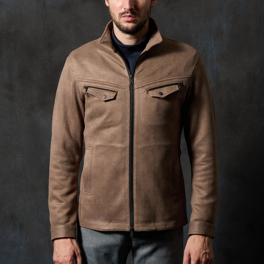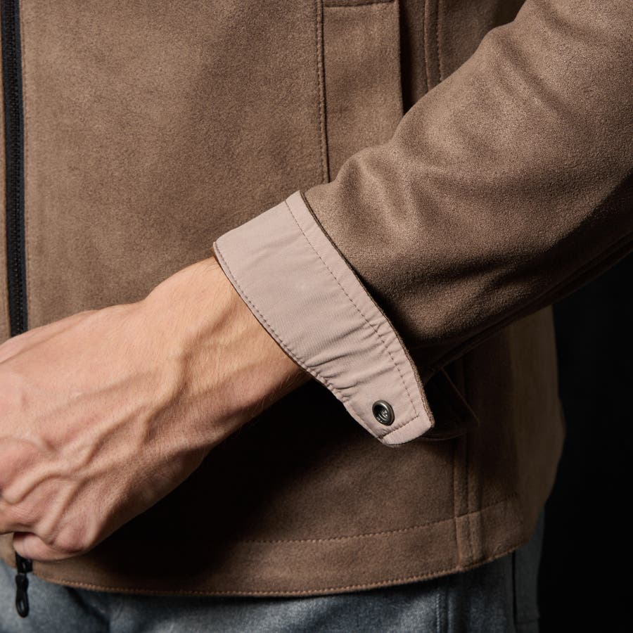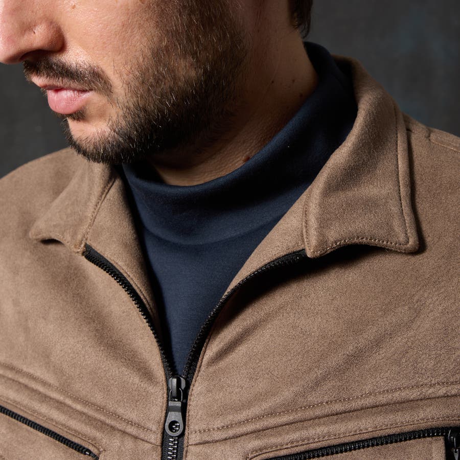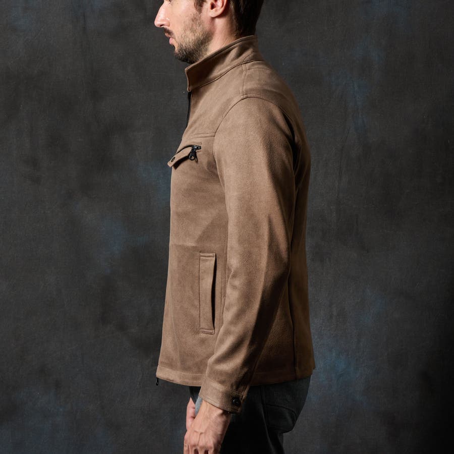 柔らかスエード風起毛素材を使用したライダース風ブルゾン。