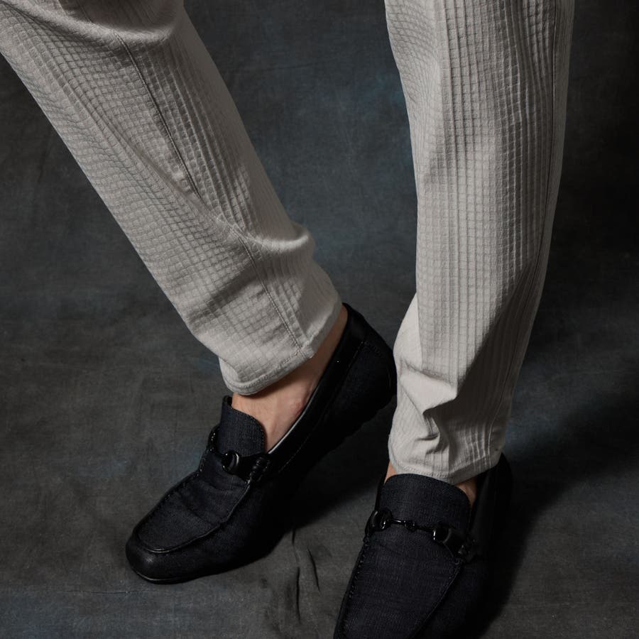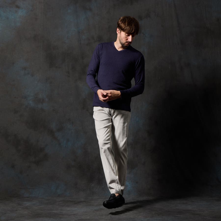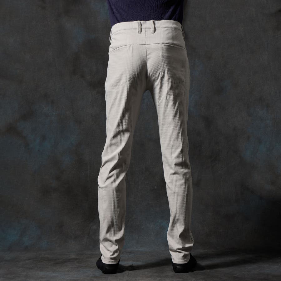 膝から裾口にかけて少しストレートなシルエットに設定した細身の綺麗なシルエットに仕上げています。