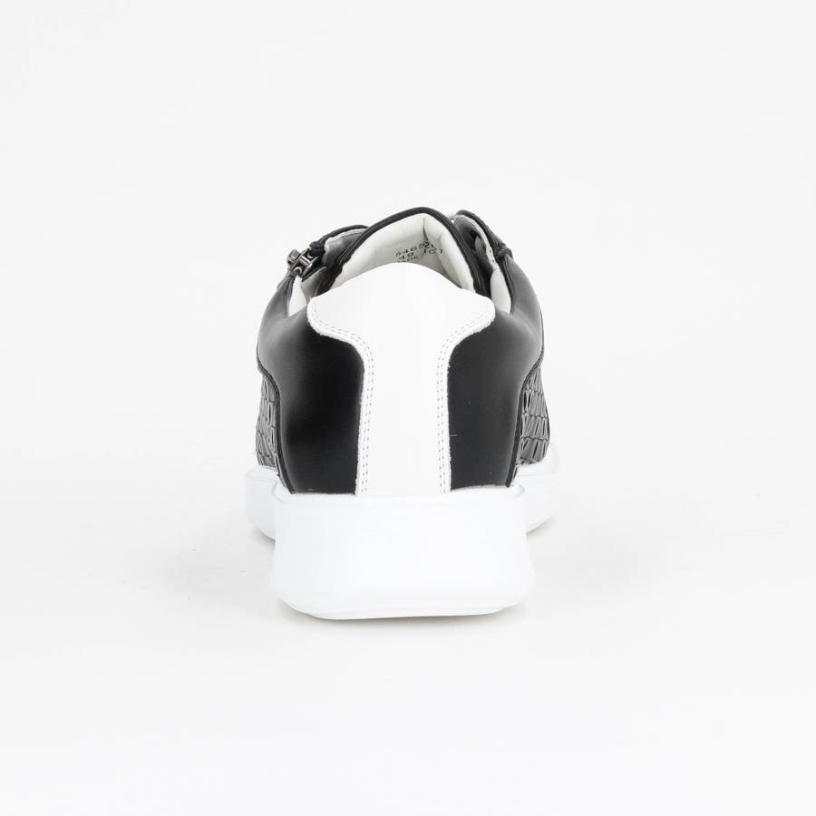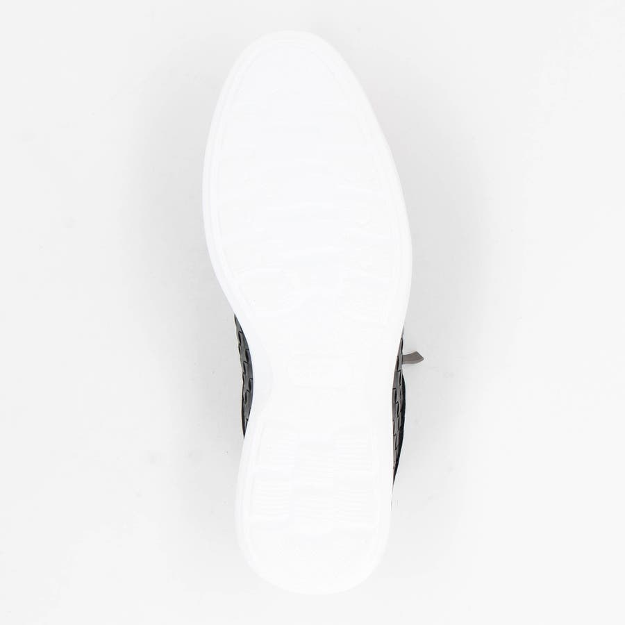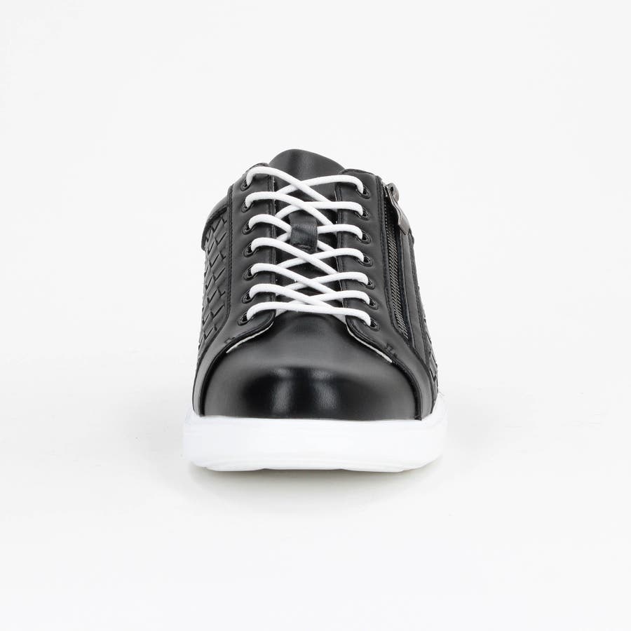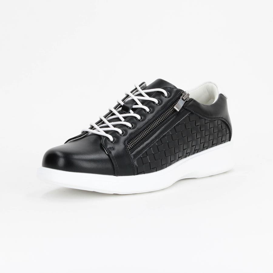軽量ソールを採用したレースアップスニーカー。履きやすいサイドファスナー開き仕様、サイドパネルのイントレ(編み込み)デザイン、モノトーン配色、シャープなシルエットのラスト(木型)を採用する事でモードなイメージに仕上げています。持った時にわかる程好いボリュームのある軽量ソールと履いた時にわかるクッション性の高いインソールを採用して履き心地を高めています。アッパー同色のシューレースもスペアで付けていますので、気分に合わせて変えてください。
