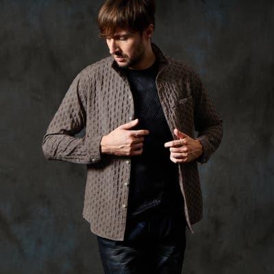 素材にボリュームがありますので、ヨーク裏やカフス裏には同色系のストレッチ裏地を採用する事で部分的な厚みを抑え、ちょっとしたアクセントになる様にしています。