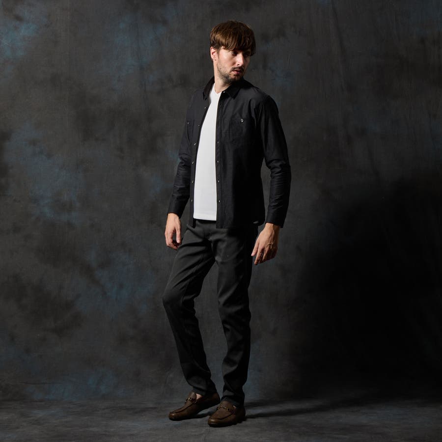 カットソー素材ですので、細身でもストレスフリーな着心地。