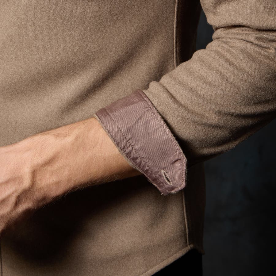 衿裏、カフス裏の別生地使いをアクセントにしております。