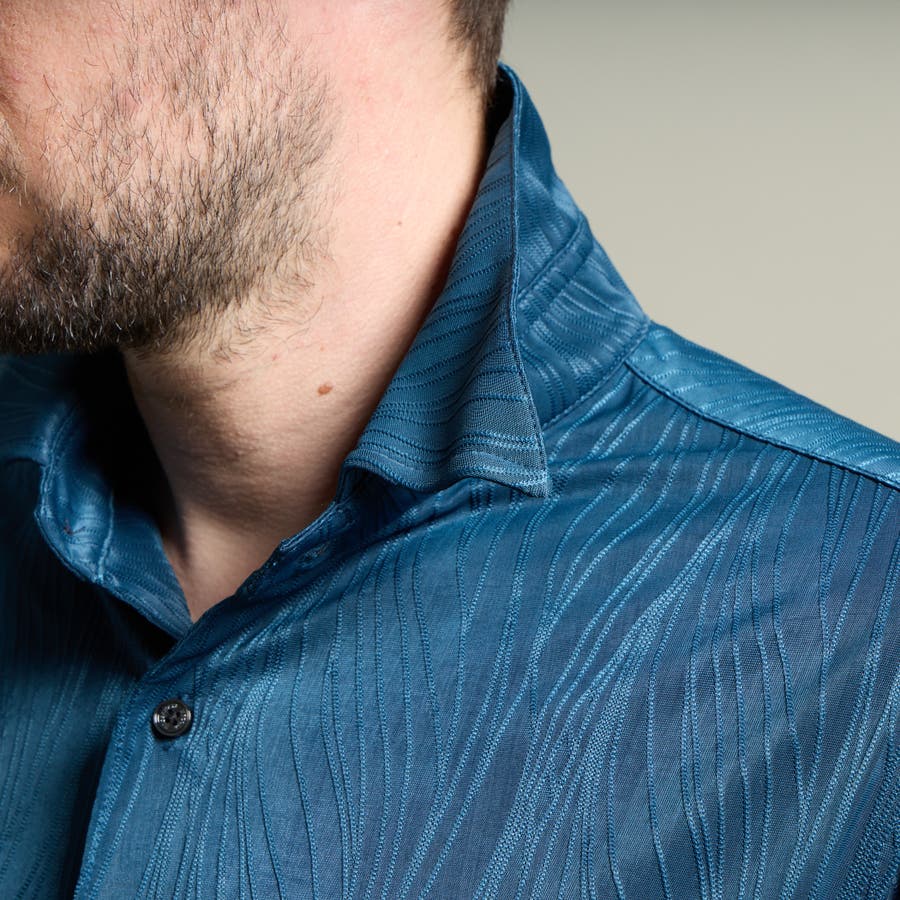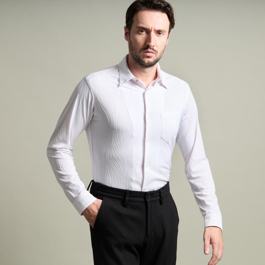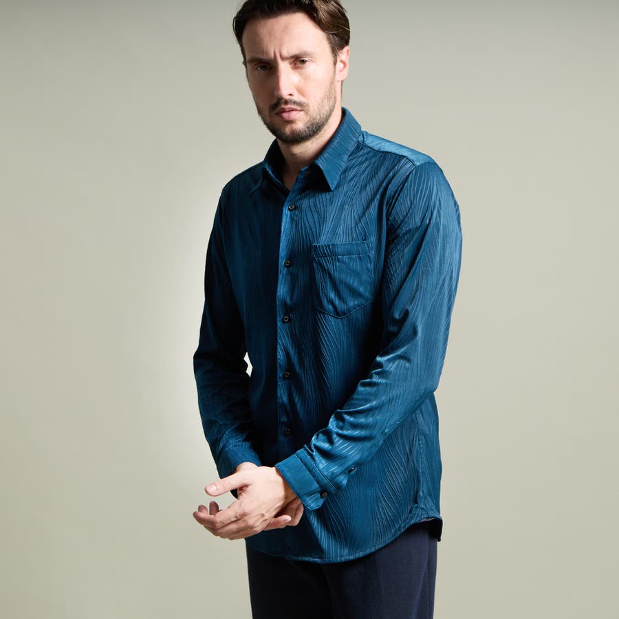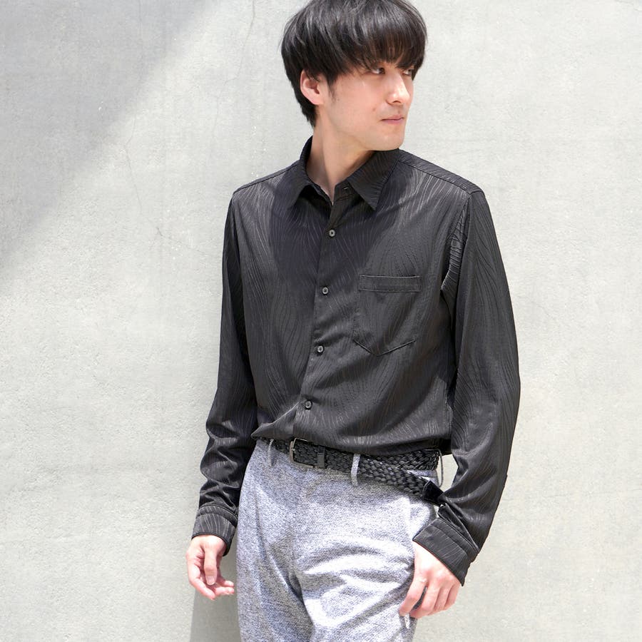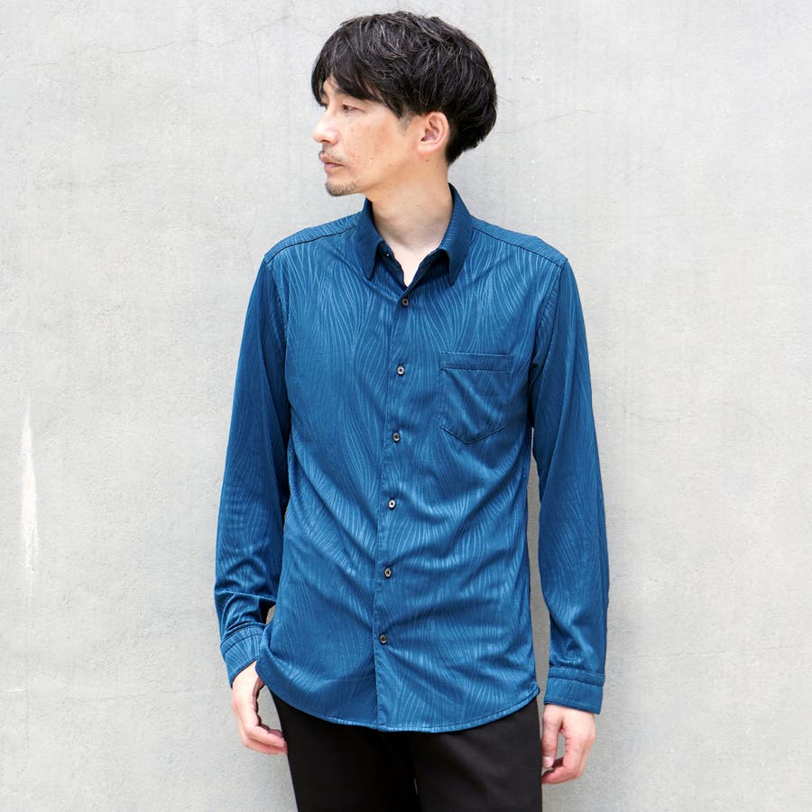 衿先にワイヤ-を仕込んだレギュラーカラ-シャツ。