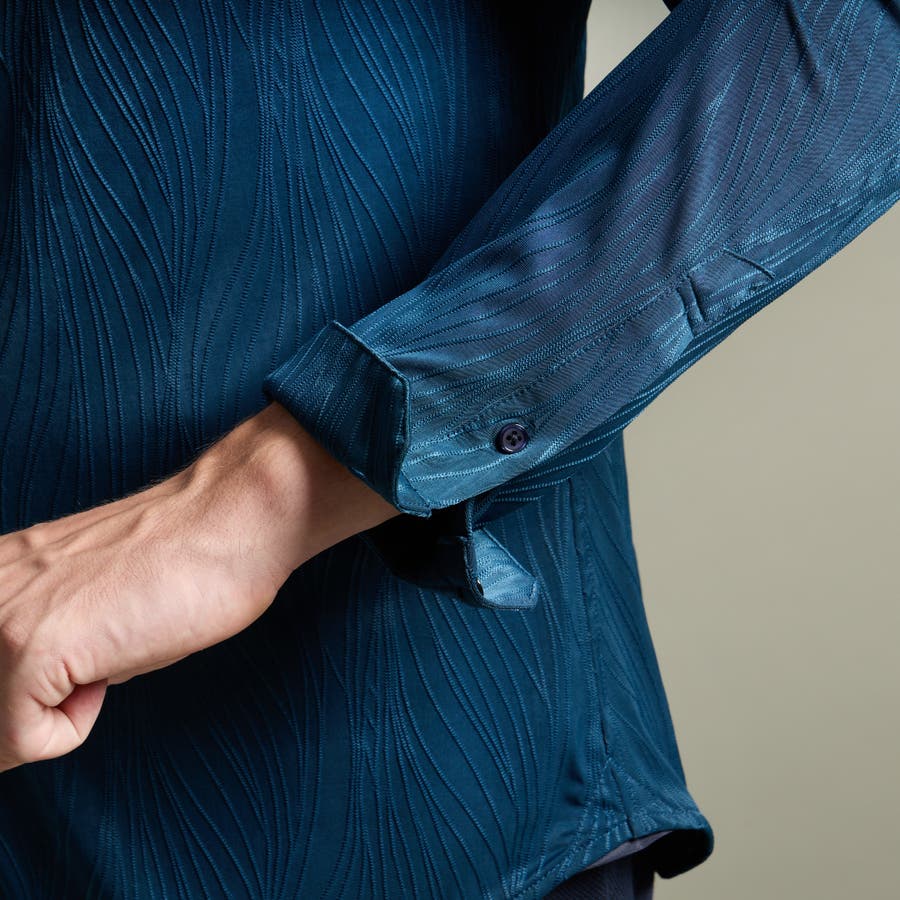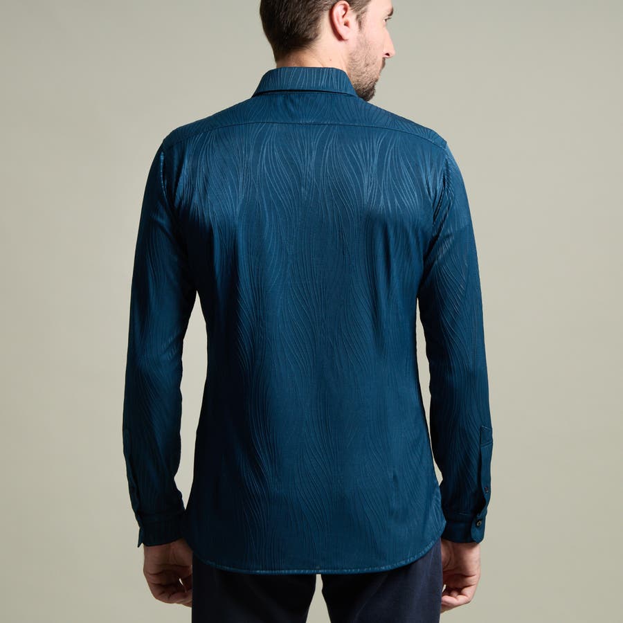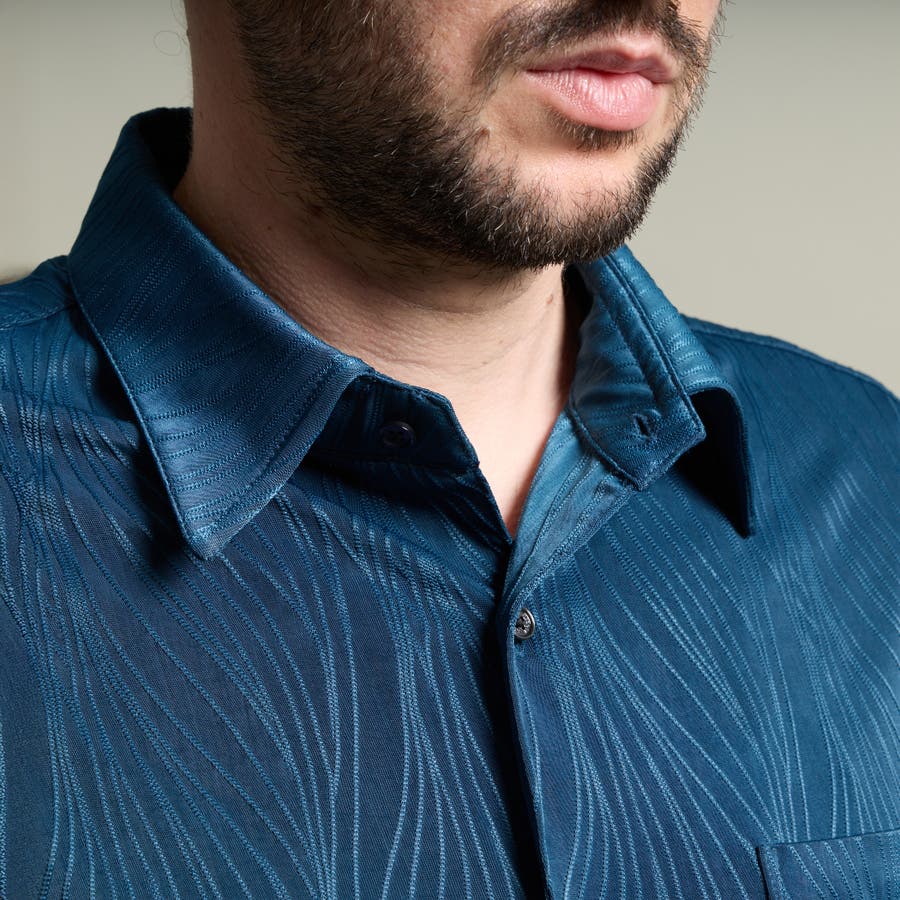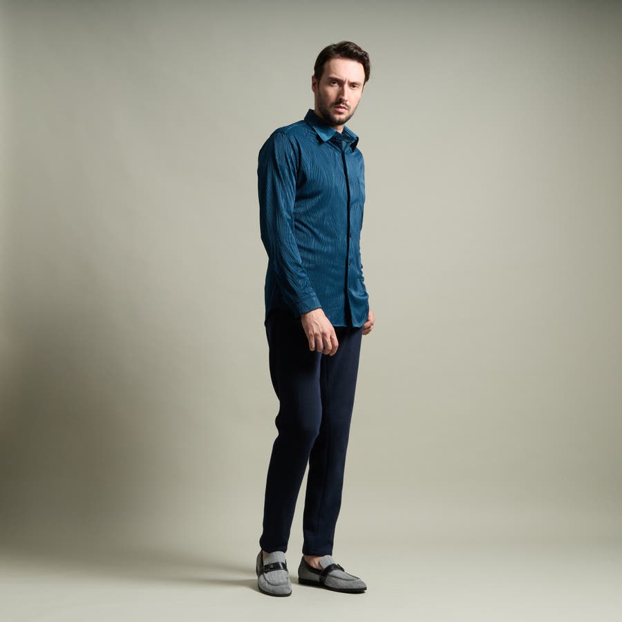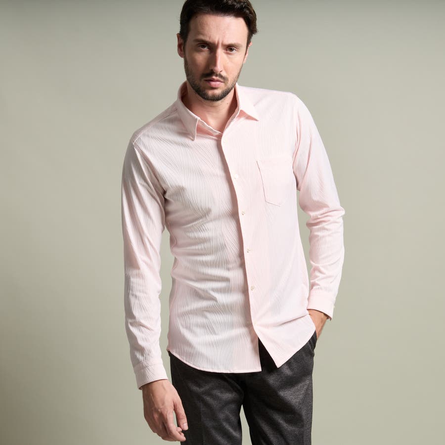 衿先にワイヤ-を仕込んだレギュラーカラ-シャツ。