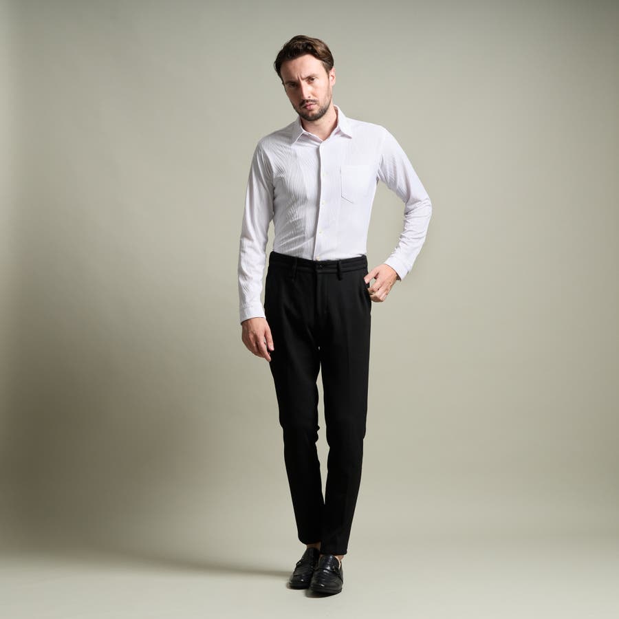 台衿を少し高めに設定することでネクタイもできるようにし、ビジネスでもカジュアルでも使用できるようにしております。