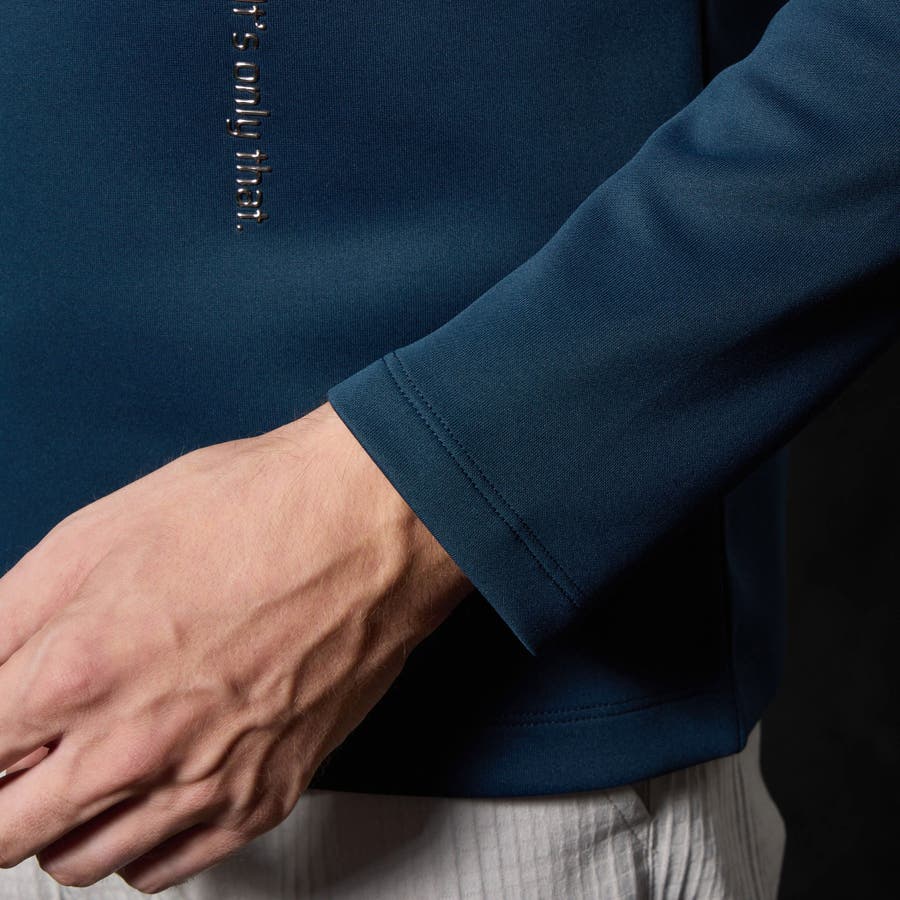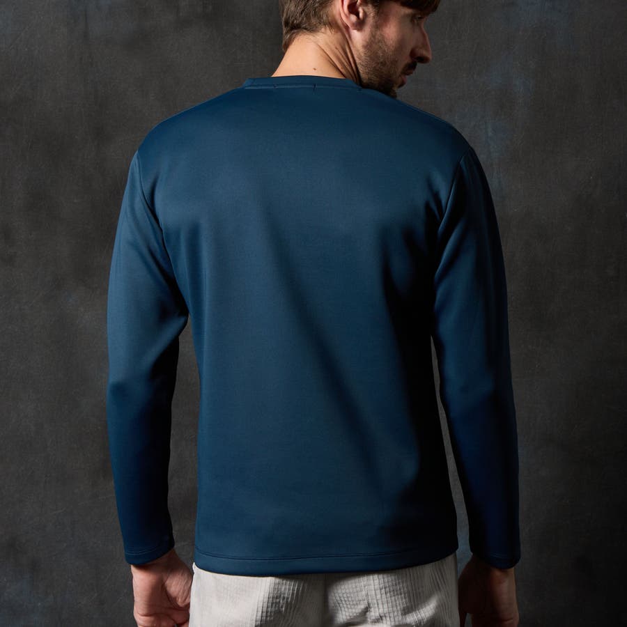 シルエットを綺麗に見せる張り感とストレッチ性に優れるポンチ素材を採用しています。蓄熱保温加工を施しているので、寒い時期にインナーとして重宝します。