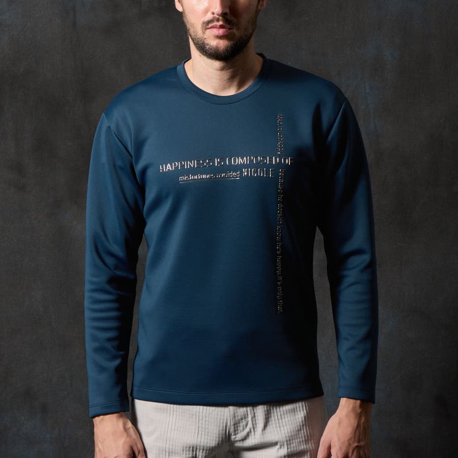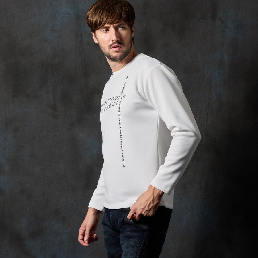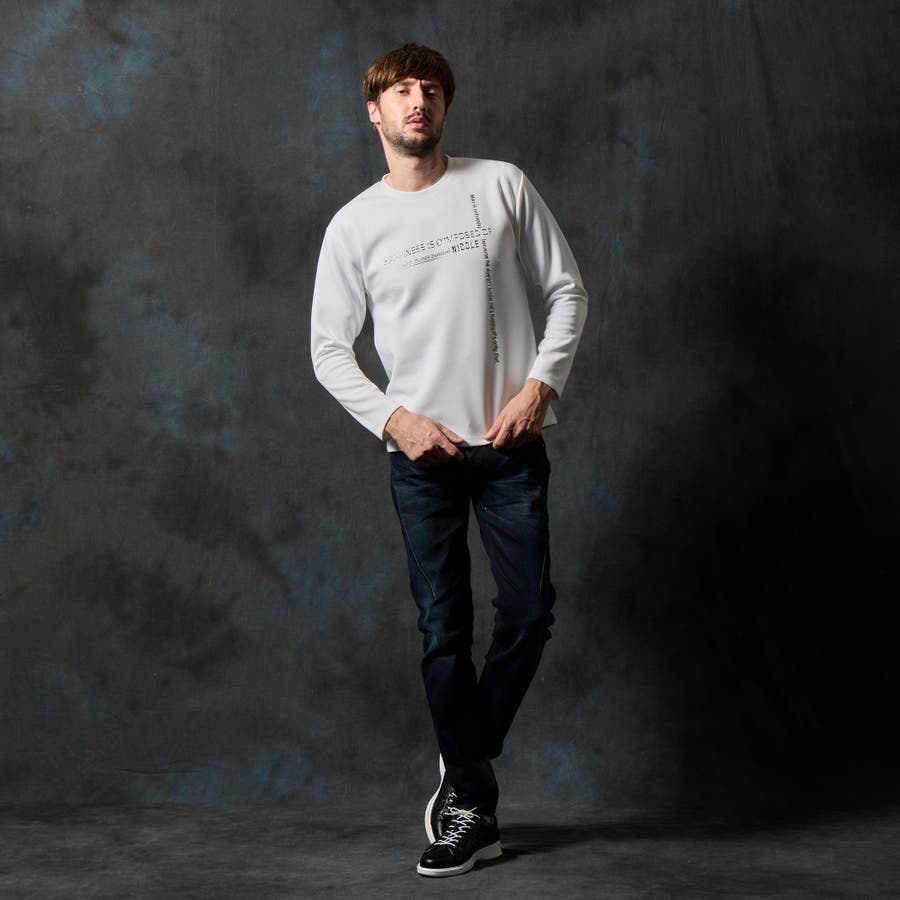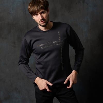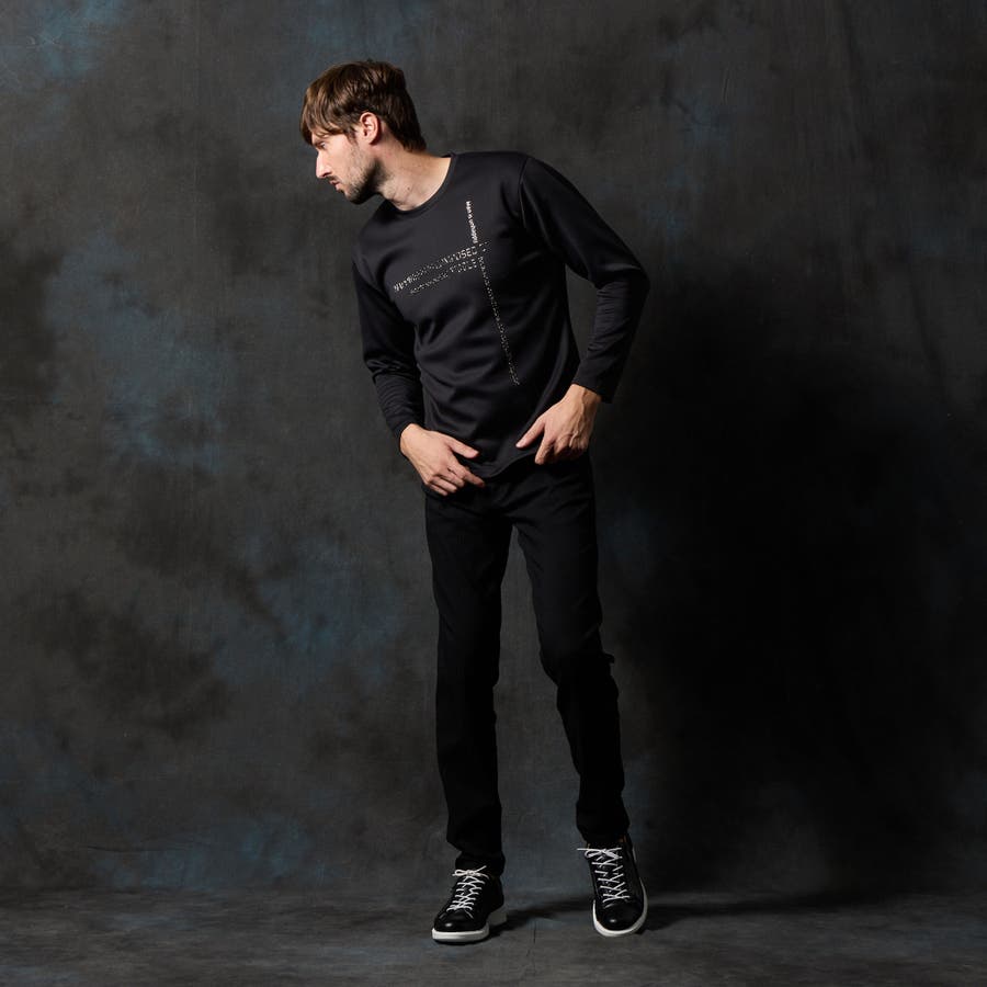 前身頃にクロスに施されたメタルジェルプリントが一際目立つクルーネック長袖プルオーバーになります。シンプルなデザインの為、汎用性の高い一枚になります。