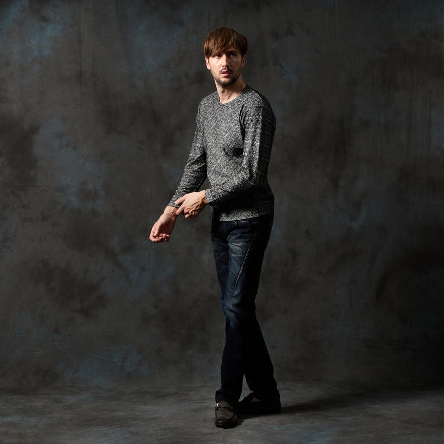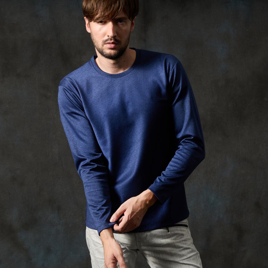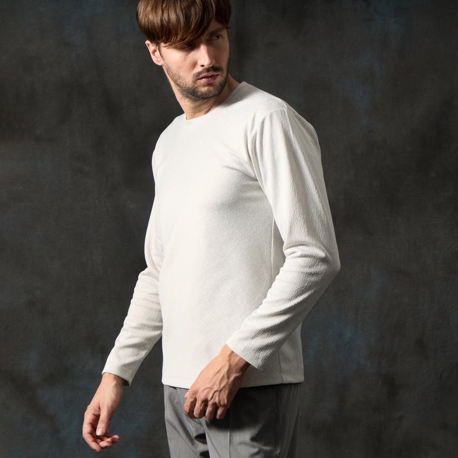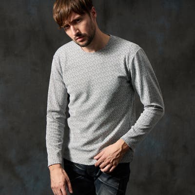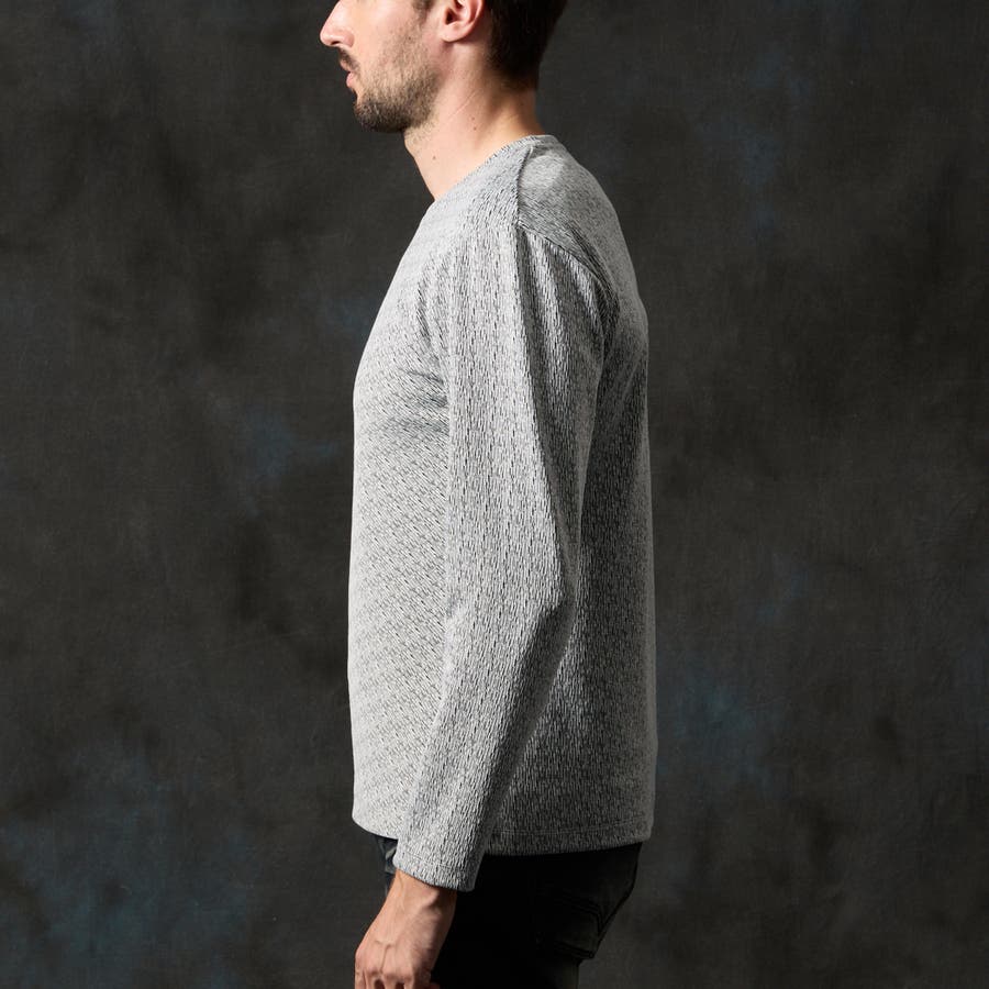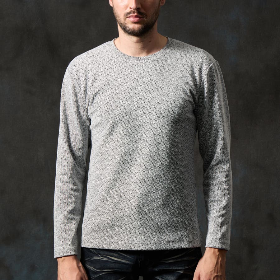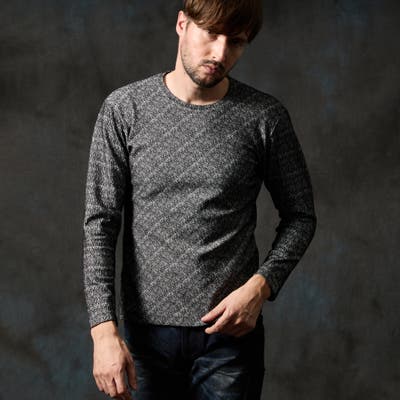 バイヤスジャカードクルーネック長袖プルオーバー